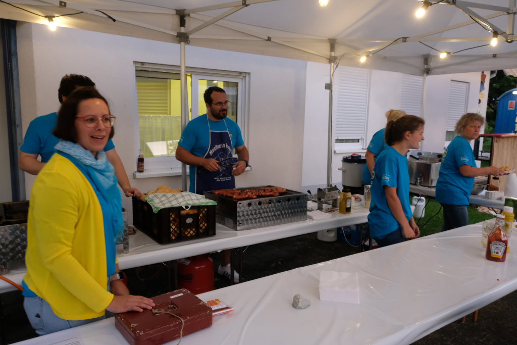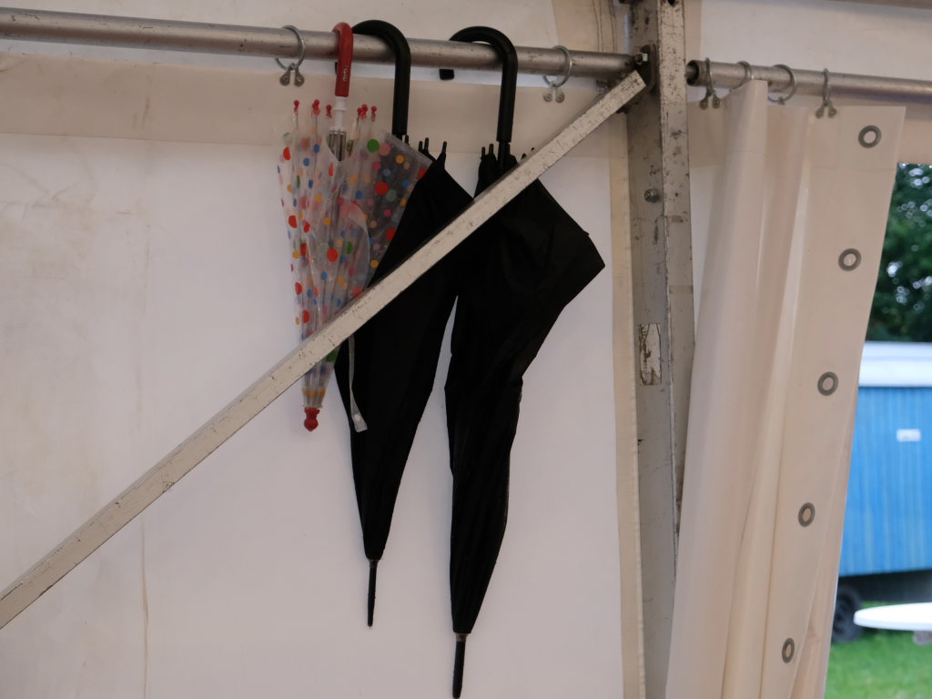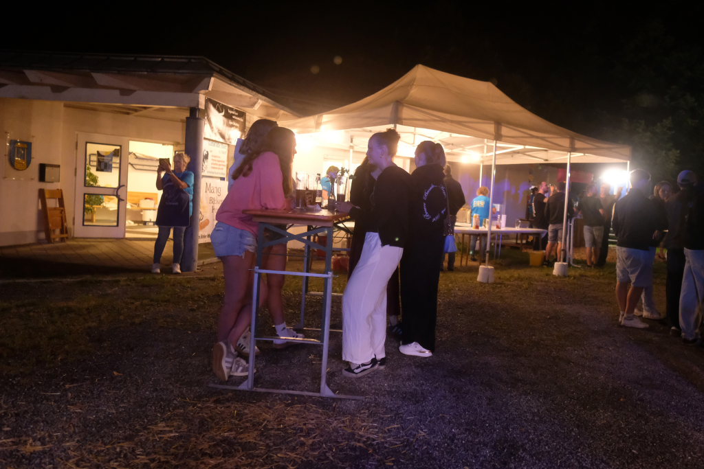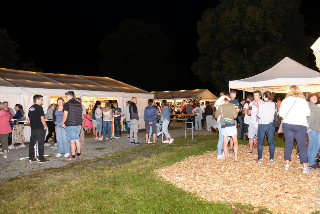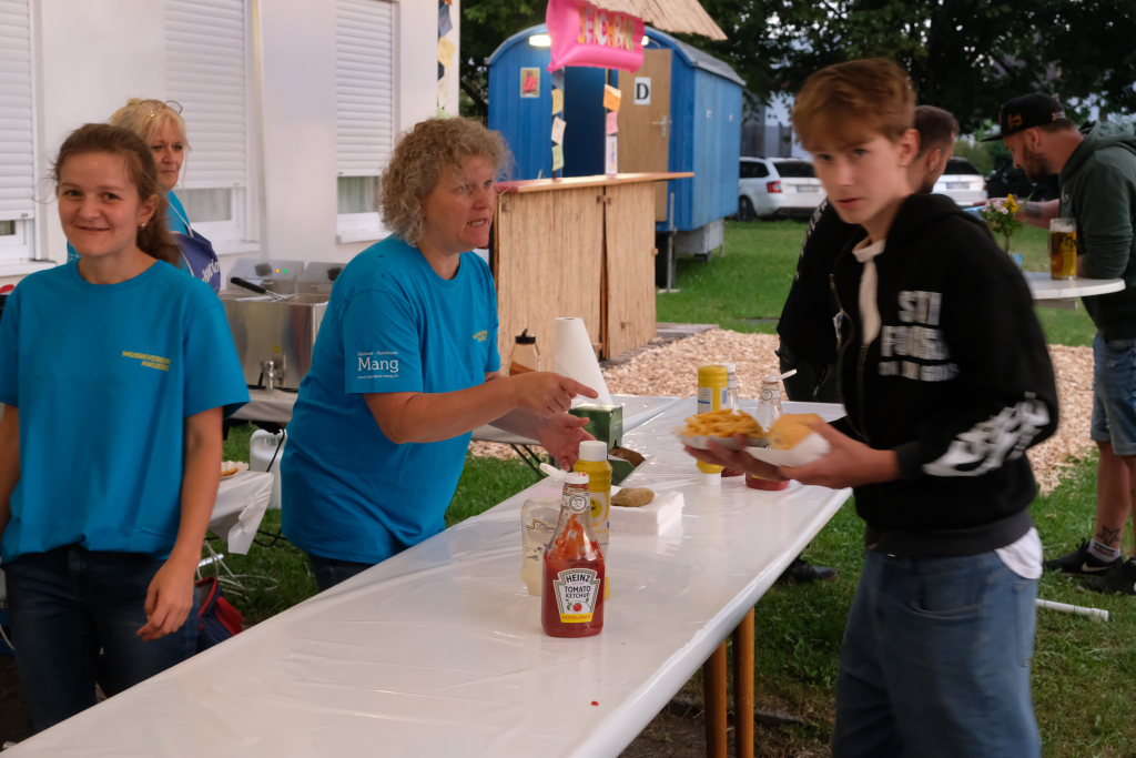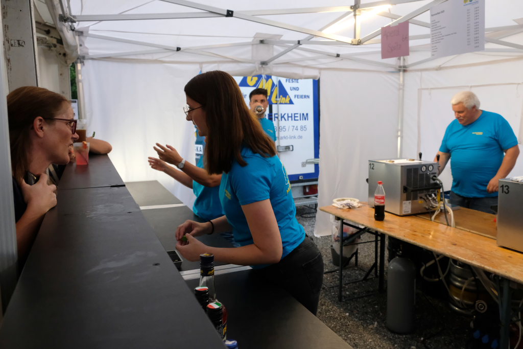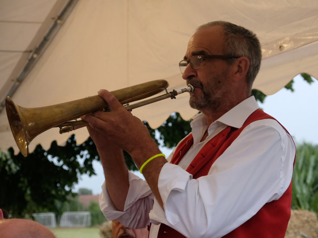 Gerade als die Musikanten am Samstagabend begannen, sich einzuspielen, konnten sie sich zu der Entscheidung für die Festzeltlösung gratulieren, denn es begann zu regnen. Aber weil sowohl der Catering-Bereich mit der Weinlaube, in welcher „der Obere Wirt“ Roland Biberach edle Tropfen ausschenkte, wie auch die Musikantenbühne überdacht waren, stellte das kein allzu großes Problem dar.
