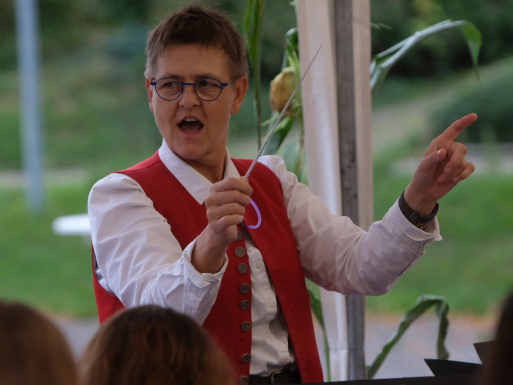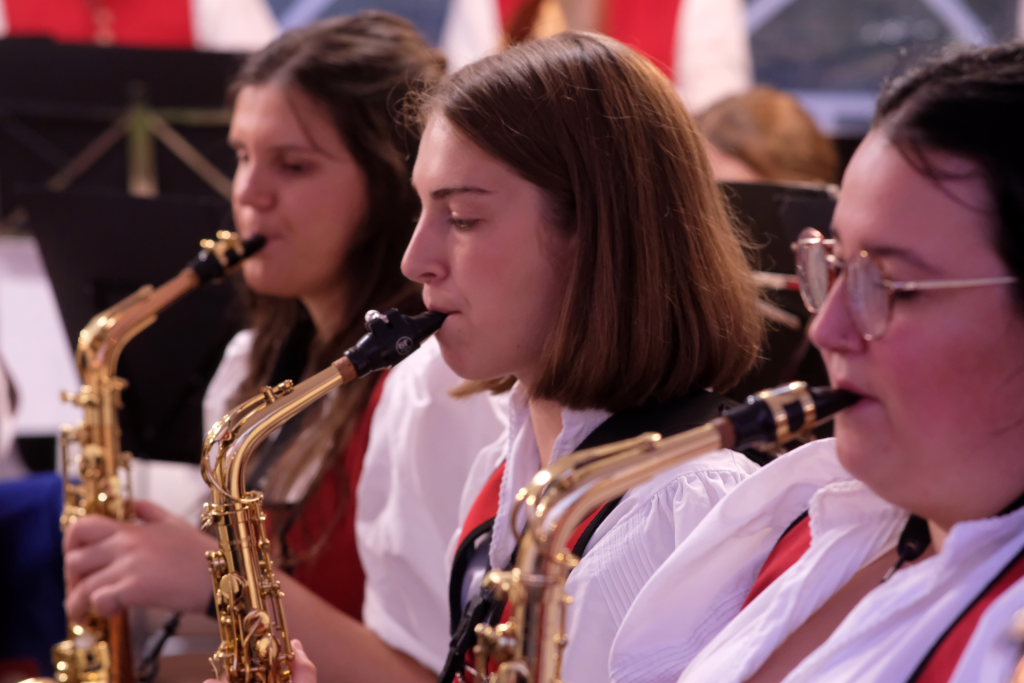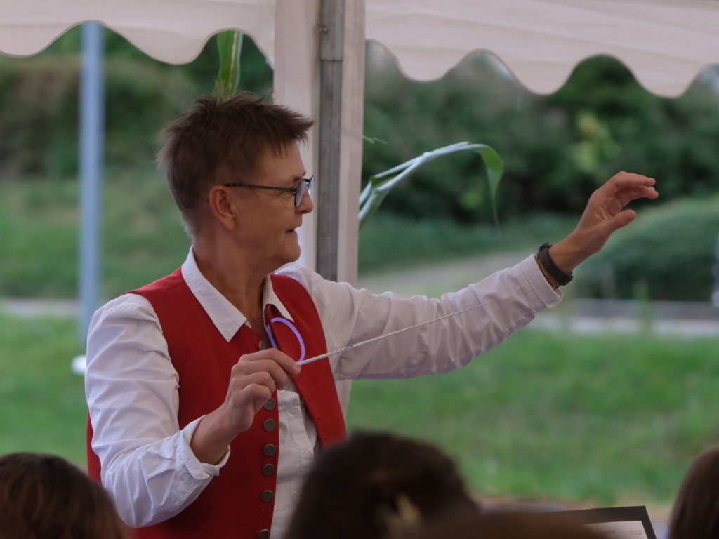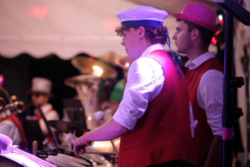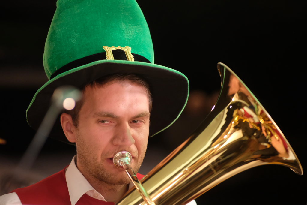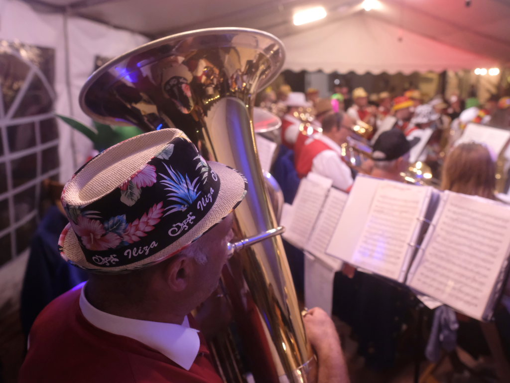 Am Samstagabend spielte der Musikverein Hauerz letztmals unter dem Interims-Dirigat von Anja Vincon, die den Abend mit einem bulgarischen Marsch eröffnete. Neben solch „exotischen“ Blasmusiktiteln boten die rund 40 Musiker im ersten Teil natürlich auch Klassiker wie die Lottchen-Polka, die Scharnagl-Polkas „Von Freund zu Freund“, und „Ehrenwert“ oder die Konzertmärsche Medici und Abel Tasman. Und weil das Fest auch ein Fest für die ganze Familie ist, hatten sie natürlich auch neben den Blasmusik-Klassikern auch Pop und Schlagertitel im Programm, zu dem sie sich auch mit witzigen Kopfbedeckungen eindeckten. Und so bekamen die Festbesucher etwa die Hits der Les Humphries Singers, Italo Pop Classics oder vom Partyplanet von Musikern geboten, deren Häupter bunt glitzernde Partyhüte, das eine oder andere Prinzessinnenkrönchen, Strohhüte, aber auch Märchenhaftes oder aus dem Fußballstadion bekannte Deutschlandkappen krönten.