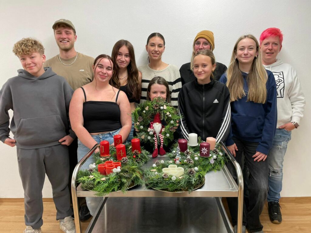 Eines von vielen Projekten im Jugendtreff war die Adventskranz-Aktion mit Alica Kanzleiter vom Blumenstüble an der Ach. Foto: Stadt Bad Wurzach