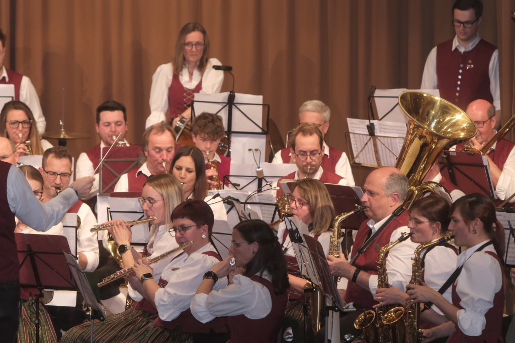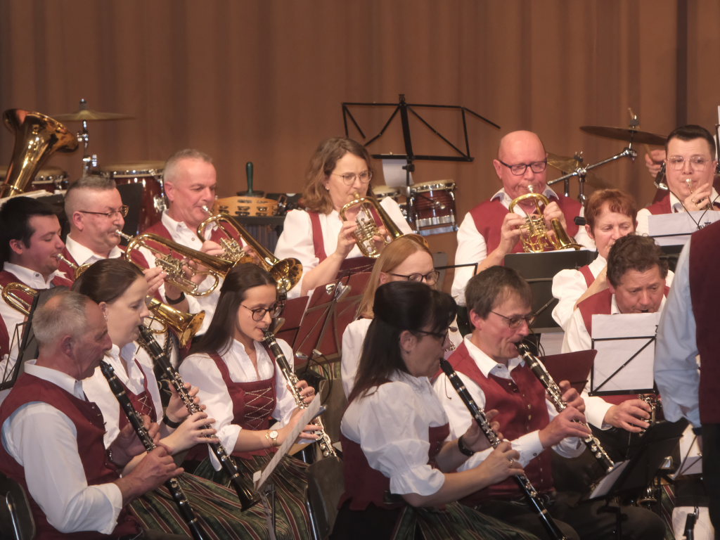 Mit der Egerländer Komposition „Füreinander da“ von Martin und Stefan Hutter führte die große Besetzung der Ziegelbacher Musikanten um Dirigent Bernd Schosser in das Programm ein, durch das in gewohnter Manier Vorstand Freddy Holzmüller führte.