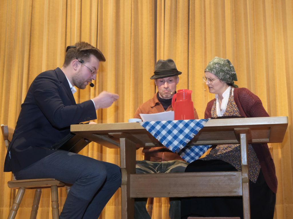 Den Auftakt machte wieder das Team vom Sprachkurs „Altbayrisch für Anfänger“ das im Rahmen der 40- jährigen Geschichte des Bockbierfestes schon zur Institution geworden ist. Thema in diesem Jahr: „Wie ziehe ich einen Versicherungsvertreter mit Kaffee und Kuchen elegant über den Tisch.“