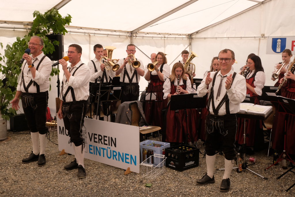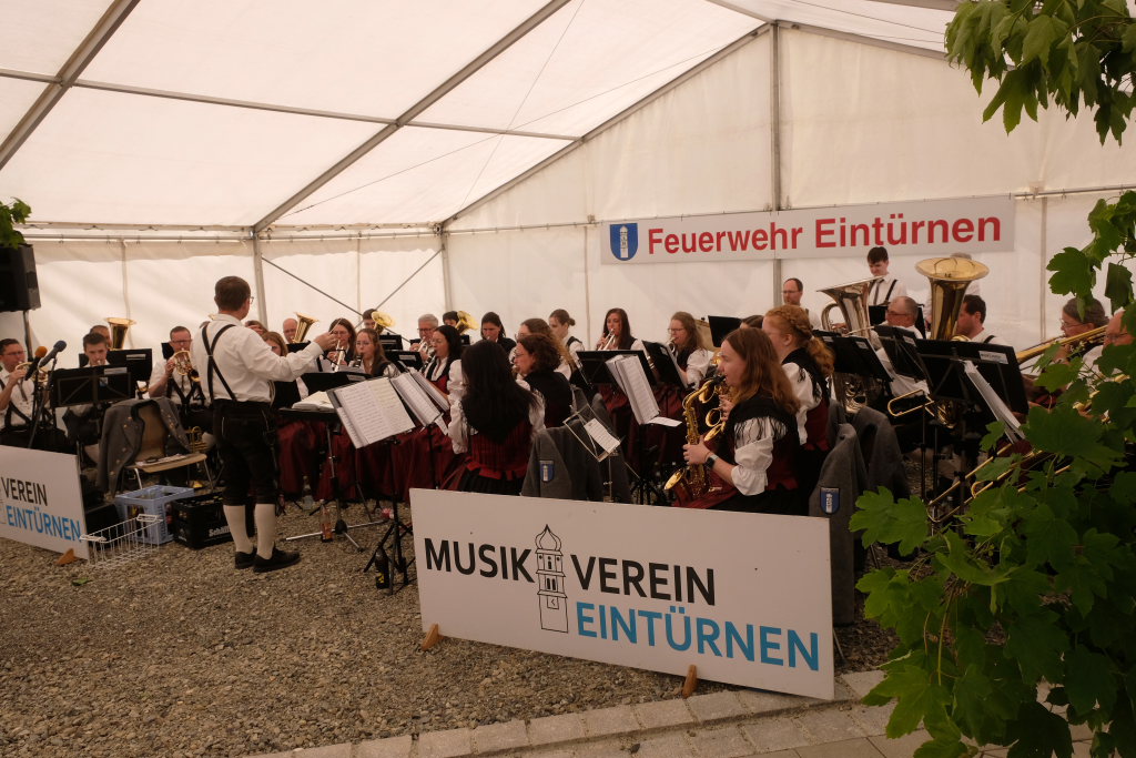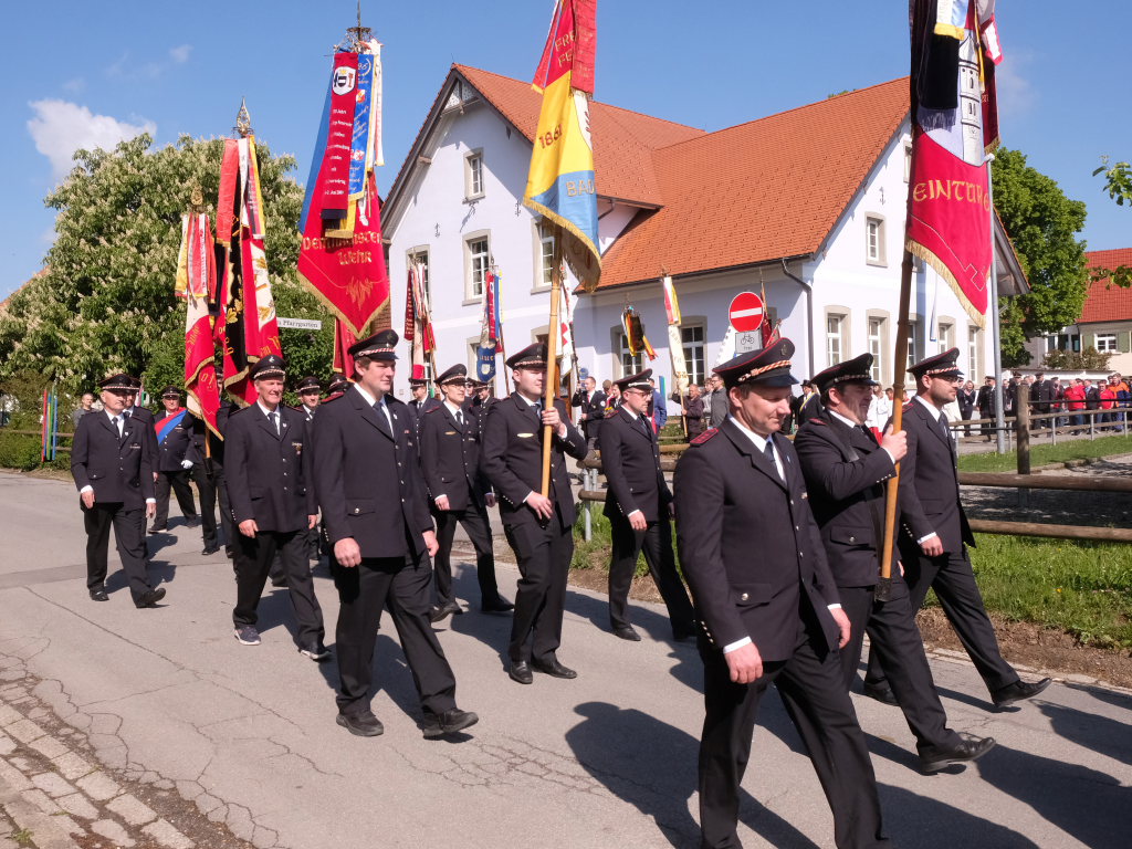 Eintürnen – Es war ein großes Fest in Eintürnen: Mit einem Festgottesdienst in St. Martin auf dem Eintürnenberg begann die große Feier der Feuerwehrabteilung Eintürnen, dem ein beeindruckender Festzug hinunter in die Ortschaft zum neuerbauten Feuerwehrgerätehaus in der Arnacher Straße 12 und die Segnung durch Pfarrer Patrick Meschenmoser folgte. Es endete mit Grußworten und Gastgeschenken, aber auch mit Essen und Trinken und Frühschoppenmusik durch die Musikkapelle im großen Festzelt daneben.