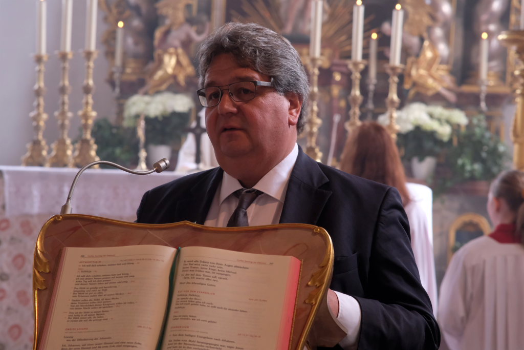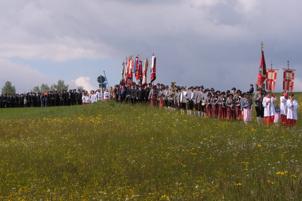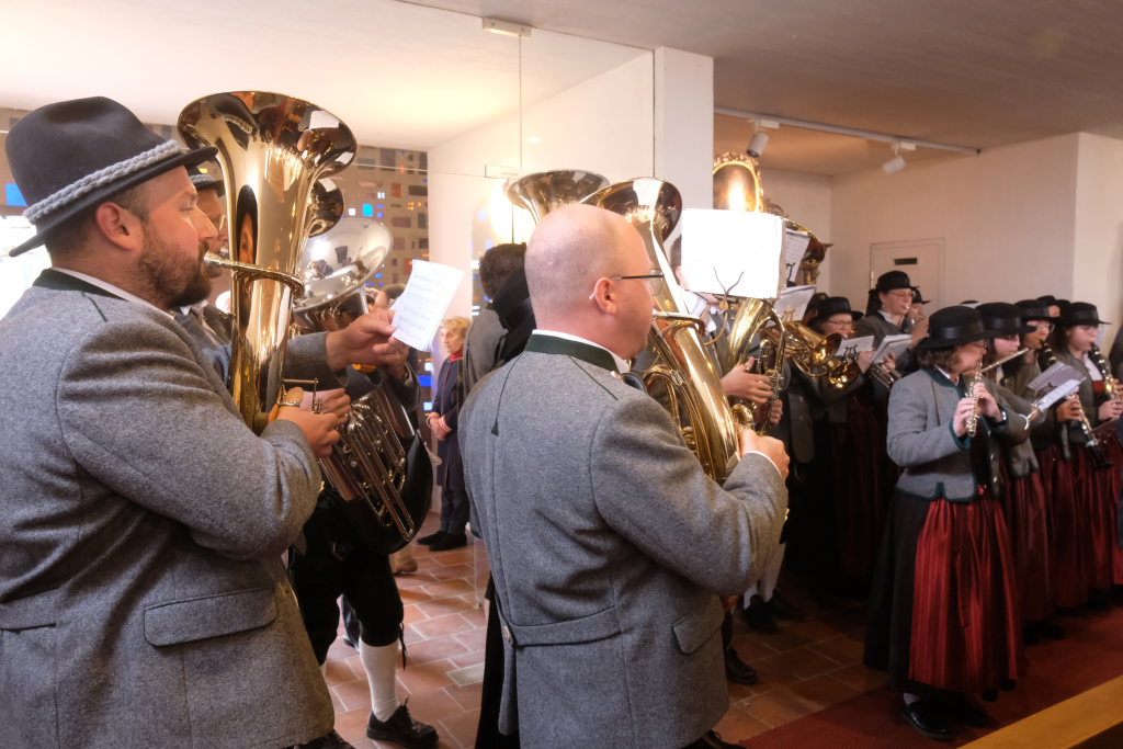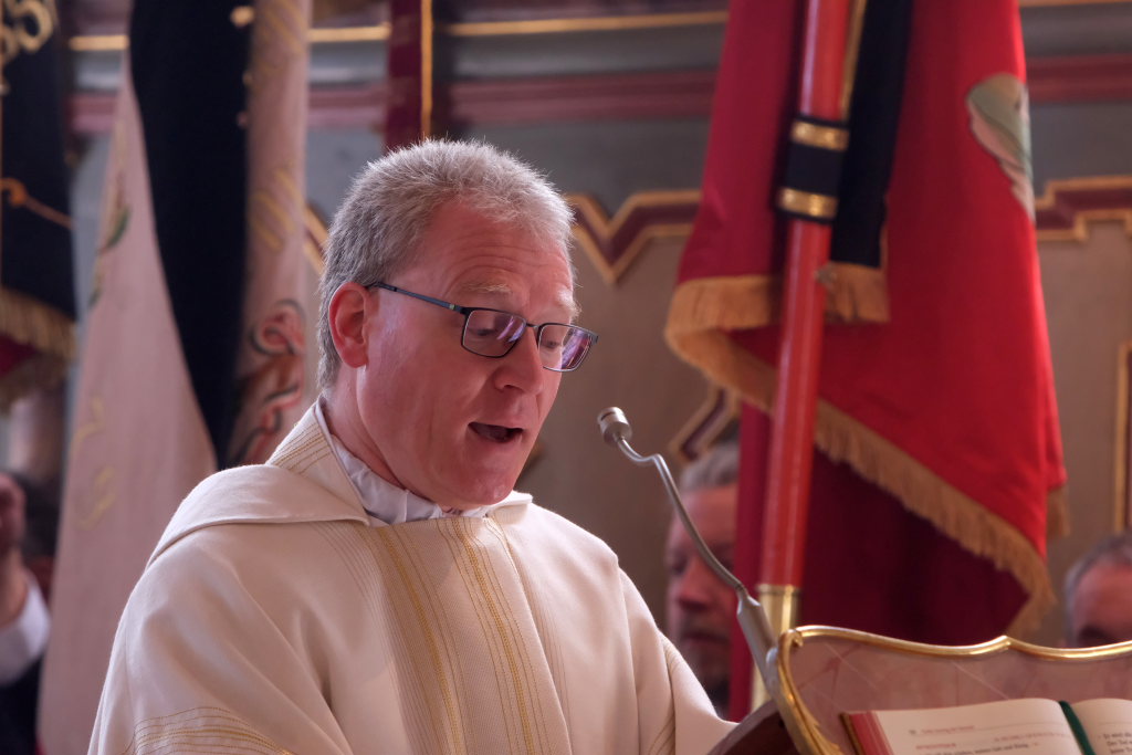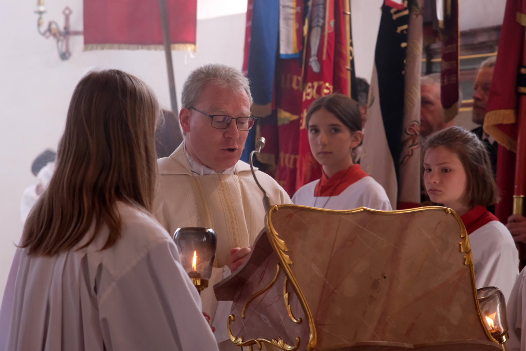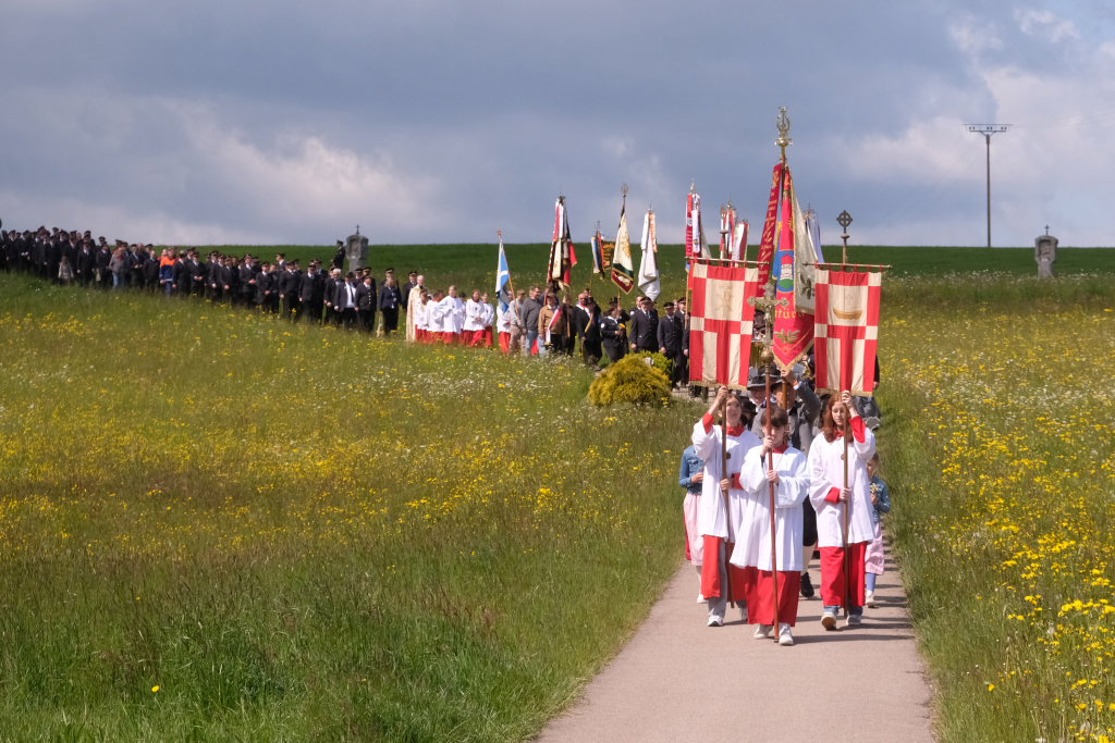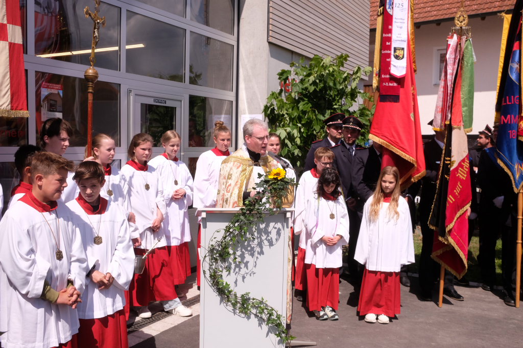 Ein besonderes Highlight lieferte Berthold Leupolz – Ortsvorsteher, Kirchengemeinderat und Sänger des Kirchenchores und Liederkranzes – als er zu seiner Dankesrede ansetzte. Denn bevor er allen dankte, die zum Gelingen des Gottesdienstes beigetragen hatten, stimmte er einen Geburtstagsgruß für Patrick Meschenmoser an, der in der letzten Woche seinen fünfzigsten Geburtstag gefeiert hatte, in den die Feuerwehrleute und weitere Mitglieder der Blaulichtfamilie begeistert mit einstimmten.