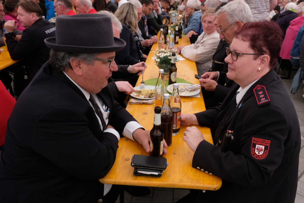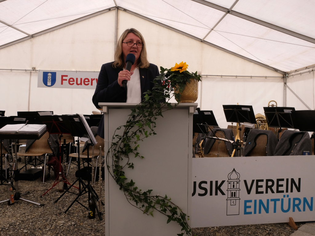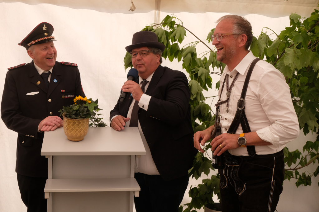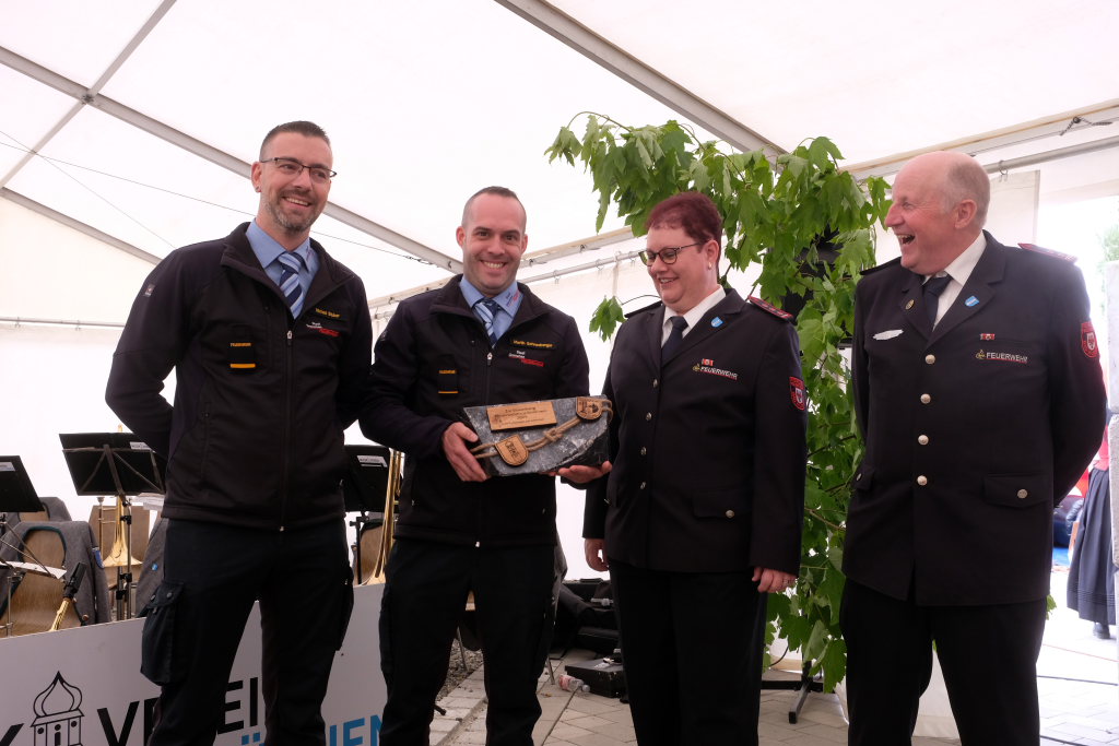 Für das feuerwehrtechnische Know-how sorgten Alfons Riether und seine Truppe sowie Rolf Butscher. Auch Ortsvorsteher Berthold Leupolz habe sich sehr in Planung und Umsetzung eingebracht, wofür ihm ebenfalls großer Dank gebühre. Mit dem bekannten Feuerwehrgruß „Gott zur Ehr, ´dem Nächsten zur Wehr“ beendete sie ihre Rede, nicht ohne zuvor allen Beteiligten an Bewirtung und Organisation ein großes Dankeschön auszusprechen.