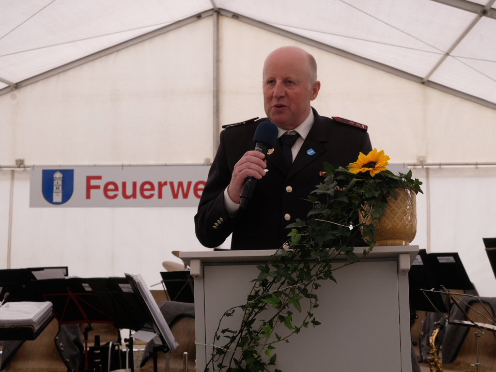 Der schon angesprochene Ortsvorsteher Berthold Leupolz freute sich jetzt, nach vielen Jahren der Diskussion – den Bestand zu richten oder einen Neubau zu erstellen – dieses Haus nun einzuweihen. Er hoffe nun, dass es im Feuerwehrbedarfsplan nicht mehr heiße: „Eintürnen hat das schlechteste Feuerwehrhaus, sondern jetzt das beste aller Ortswehren im ganzen Kreis Ravensburg.“ Ein großer Dank ging an den Ortschaftsrat, der das Feuerwehrhaus priorisierte und sich dafür ausgesprochen hatte, die Sanierung von Sanitäranlagen und Küche in der Halle noch zurückzustellen. Darüber sei er jetzt glücklich, denn die Feuerwehr sei schon so oft vertröstet worden. Ein weiterer Dank ging an den Gemeinderat, der die finanziellen Mittel bereitgestellt hatte. Ein dickes Lob ging an das Architekturbüro Schwarz für die Gestaltung: „Das Haus passt so perfekt ins Ortsbild, als sei es schon immer da gewesen.“ Er dankte auch der Nachbarschaft für ihr Verständnis für den Baulärm während der Bauzeit.