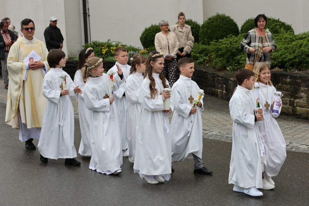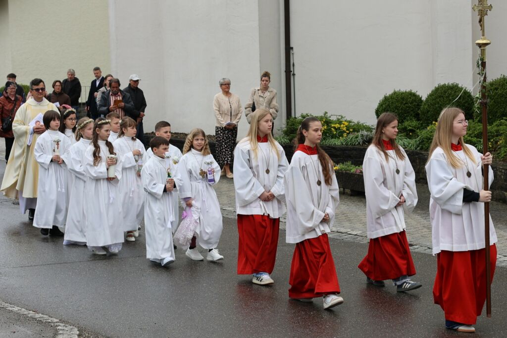 Hauerz / Seibranz (dbsz) – Neun Hauerzer Kinder empfingen erstmals das Sakrament der Kommunion. Es wurde ihnen in der Kirche in Seibranz gespendet, da die Pfarrkirche Hauerz derzeit renoviert wird. Die Musikkapelle Hauerz umrahmte den feierlichen Gottesdienst mit festlichen Weisen. Zelebrant war Pater Marius vom Gottesberg in Bad Wurzach. Unser Reporter Hans Reichert war mit der Kamera dabei.