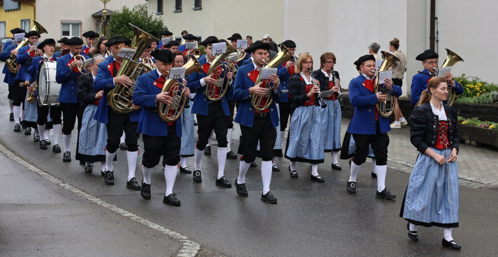 Die Musikkapelle Hauerz wurde von Christine Menig dirigiert. Zu hören war beim Platzkonzert unter anderem der Marsch „In Harmonie vereint“.