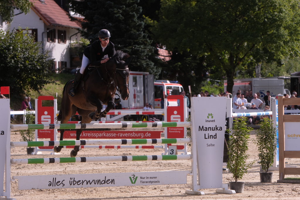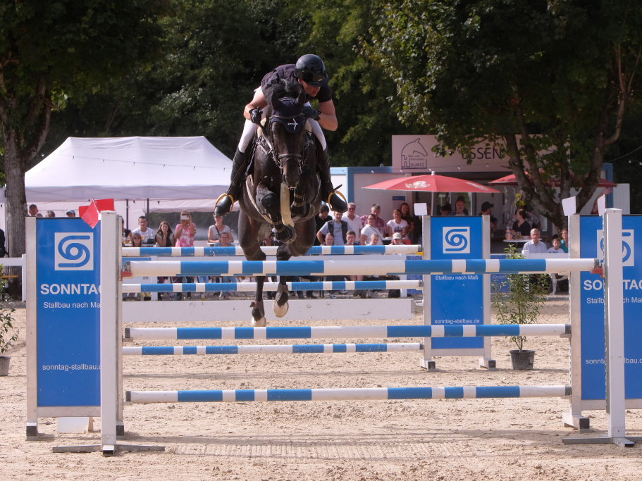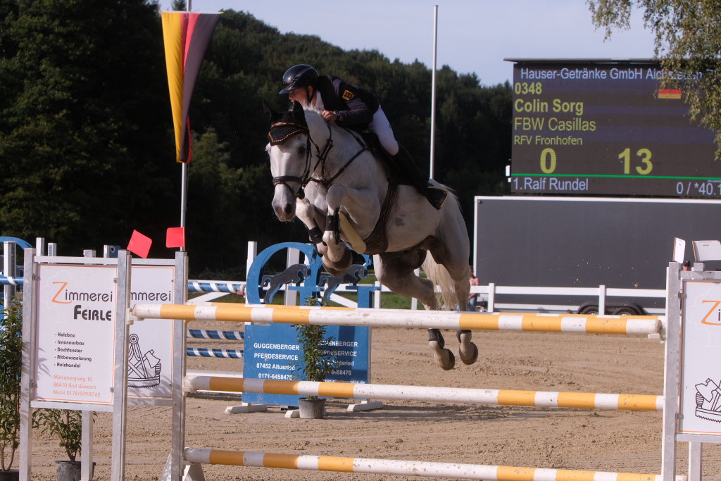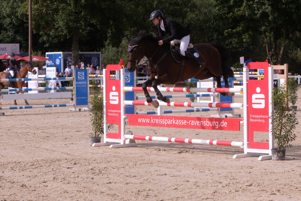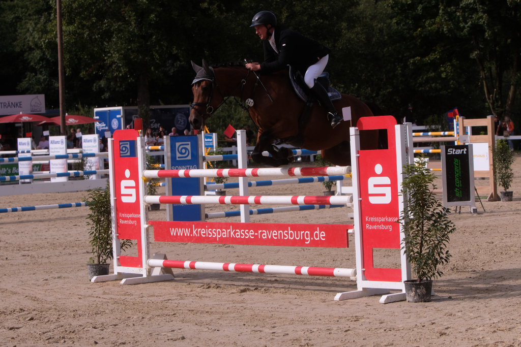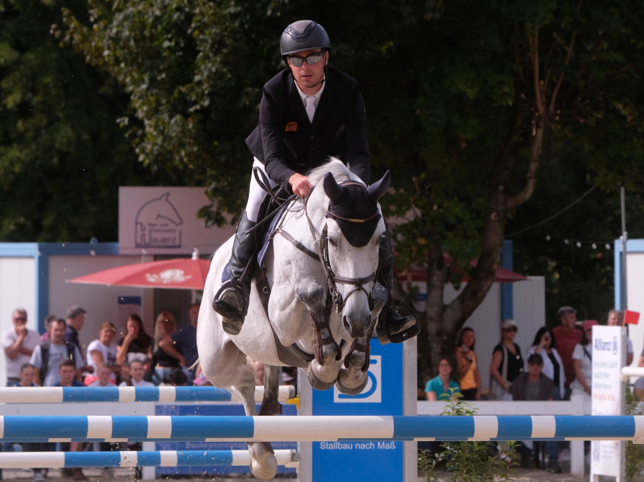 Als neuntes von 37 Paaren war der spätere Sieger in den Parcours gegangen und sorgte für ein Aufatmen beim Publikum: Er schaffte als Erster eine fehlerfreie Runde, nachdem die zuvor gestarteten Reiterinnen wie Maximiliane Fimpel (RFV Kisslegg) und Reiter teilweise am letzten Hindernis gescheitert waren, um den Einzug ins Stechen zu schaffen. Ein erneutes Aufatmen ging durch die Reihen der zahlreichen Zuschauer, als mit Colin Sorg, dem sehr jungen und talentierten Nachwuchsreiter vom RFV Fronhofen mit Casillas als zweitem Reiter ein fehlerfreier Ritt gelang und damit das Stechen gesichert war. Als drittes Paar schaffte den Sprung ins Finale die Schweizerin India Letizia Fux mit Stromerle vom RV Sulmingen. Das Stechen komplettierte Leonie Assmann vom RFV Bad Wörishofen auf Urs. Ganz knapp am Cut scheiterte der für den RFV Bad Wurzach startende Sven Sieger mit Iva de la Cor, der zwar die schnellste Zeit aller in die Wertung kommenden Paare setzte, jedoch mit 4 Fehlerpunkten das Stechen verpasste.