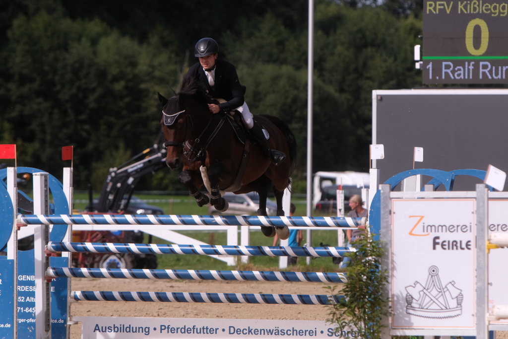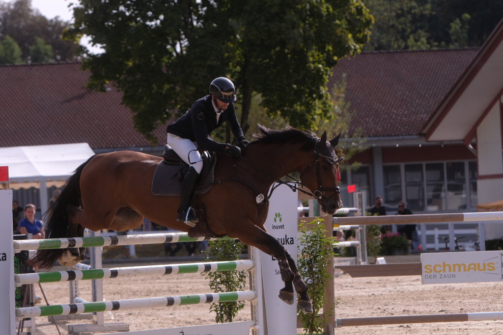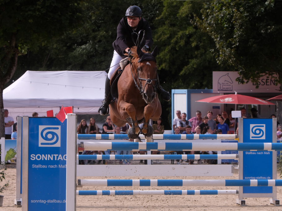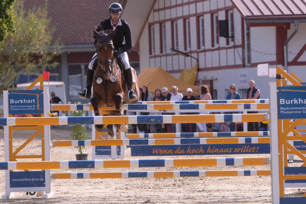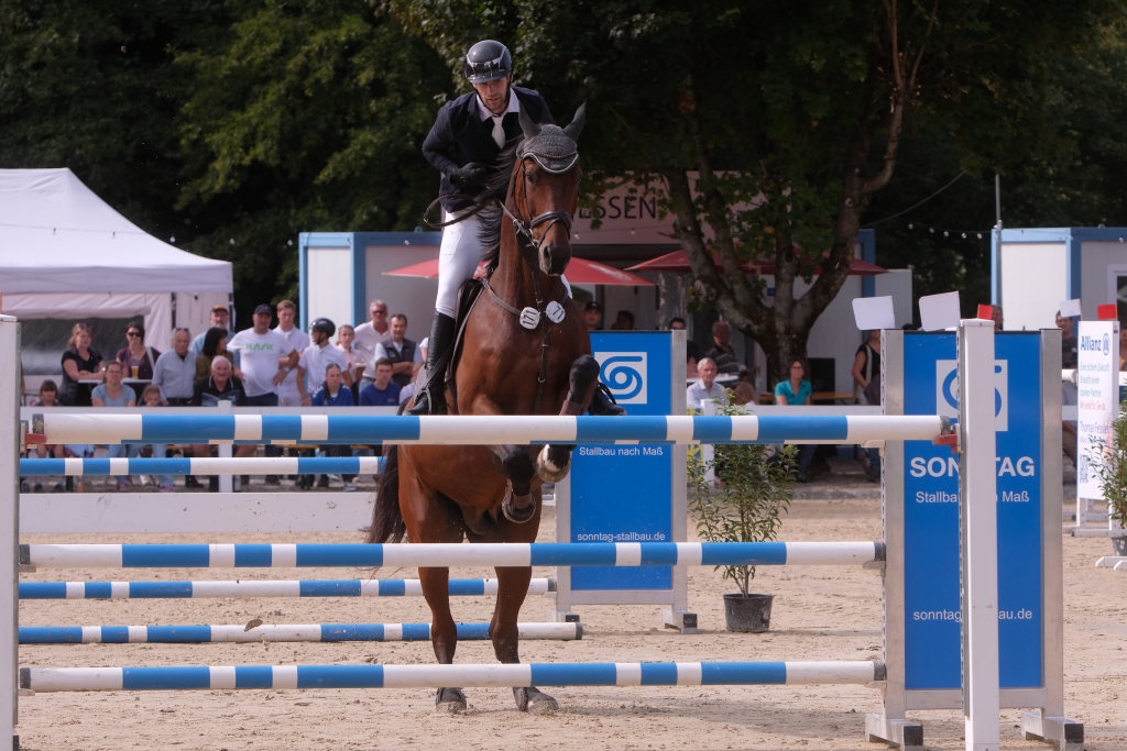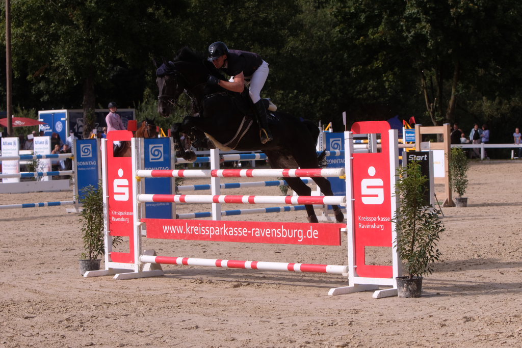 Als neuntes von 37 Paaren war der spätere Sieger in den Parcours gegangen und sorgte für ein Aufatmen beim Publikum: Er schaffte als Erster eine fehlerfreie Runde, nachdem die zuvor gestarteten Reiterinnen wie Maximiliane Fimpel (RFV Kisslegg) und Reiter teilweise am letzten Hindernis gescheitert waren, um den Einzug ins Stechen zu schaffen. Ein erneutes Aufatmen ging durch die Reihen der zahlreichen Zuschauer, als mit Colin Sorg, dem sehr jungen und talentierten Nachwuchsreiter vom RFV Fronhofen mit Casillas als zweitem Reiter ein fehlerfreier Ritt gelang und damit das Stechen gesichert war. Als drittes Paar schaffte den Sprung ins Finale die Schweizerin India Letizia Fux mit Stromerle vom RV Sulmingen. Das Stechen komplettierte Leonie Assmann vom RFV Bad Wörishofen auf Urs. Ganz knapp am Cut scheiterte der für den RFV Bad Wurzach startende Sven Sieger mit Iva de la Cor, der zwar die schnellste Zeit aller in die Wertung kommenden Paare setzte, jedoch mit 4 Fehlerpunkten das Stechen verpasste.
