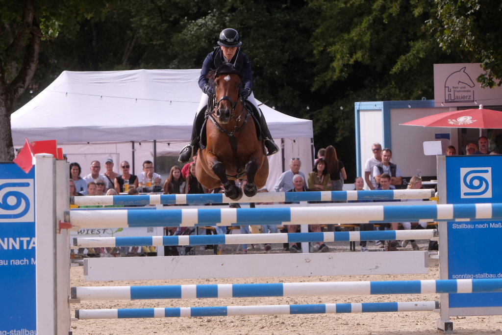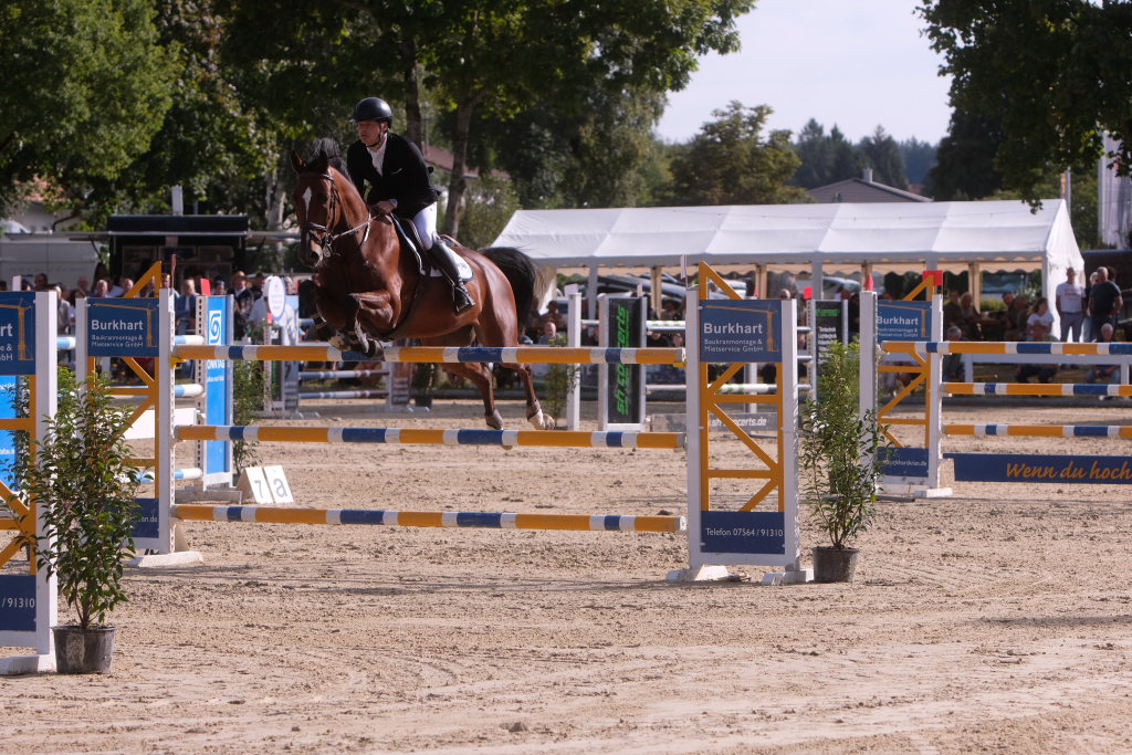 Hauerz – In diesem Jahr hat es geklappt: Der Vorjahresdritte vom RC Rupberg schaffte am Sonntag beim sportlichen Höhepunkt und Abschluss des Pferdefestivals in Hauerz mit „Nice Behaviour“ beim S-Springen mit Stechen, dem Großen Preis von Hauerz, den Sprung nach ganz oben auf das Podest.