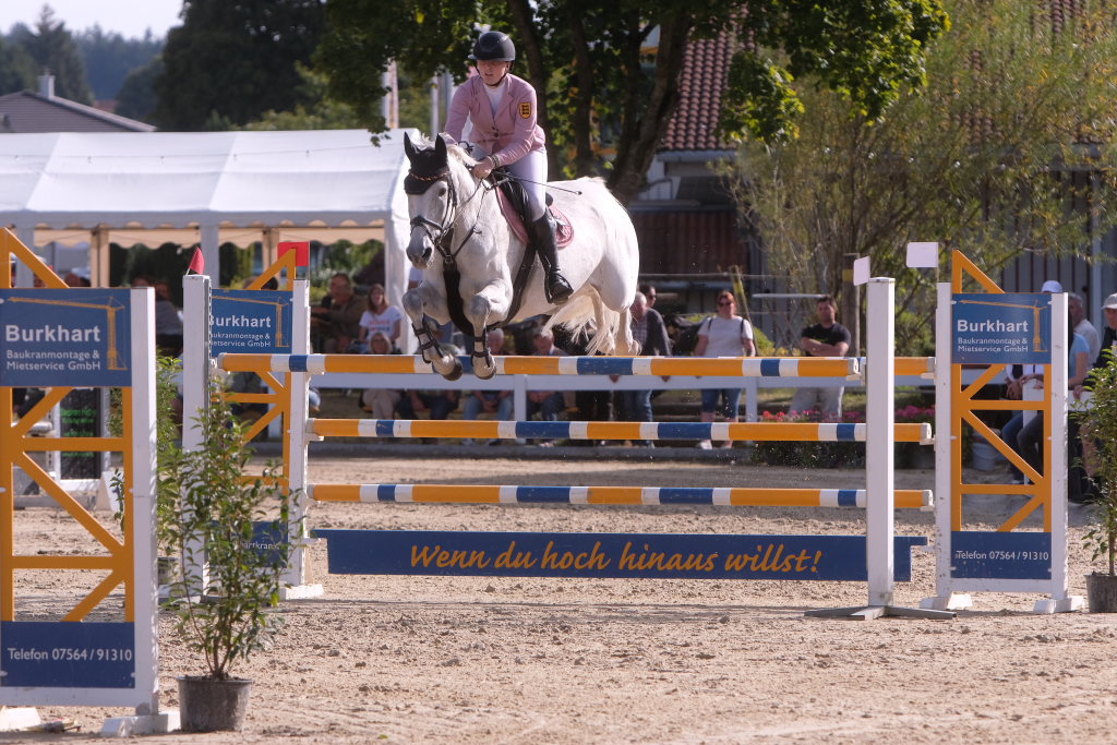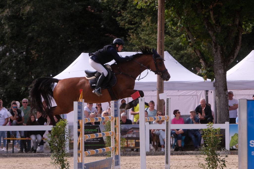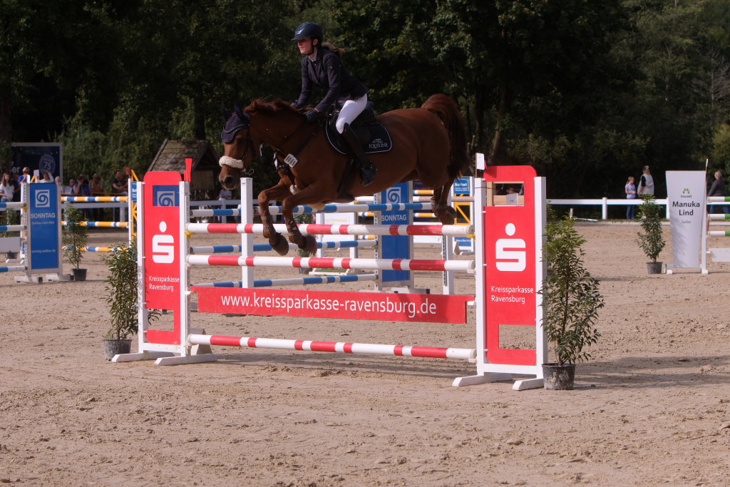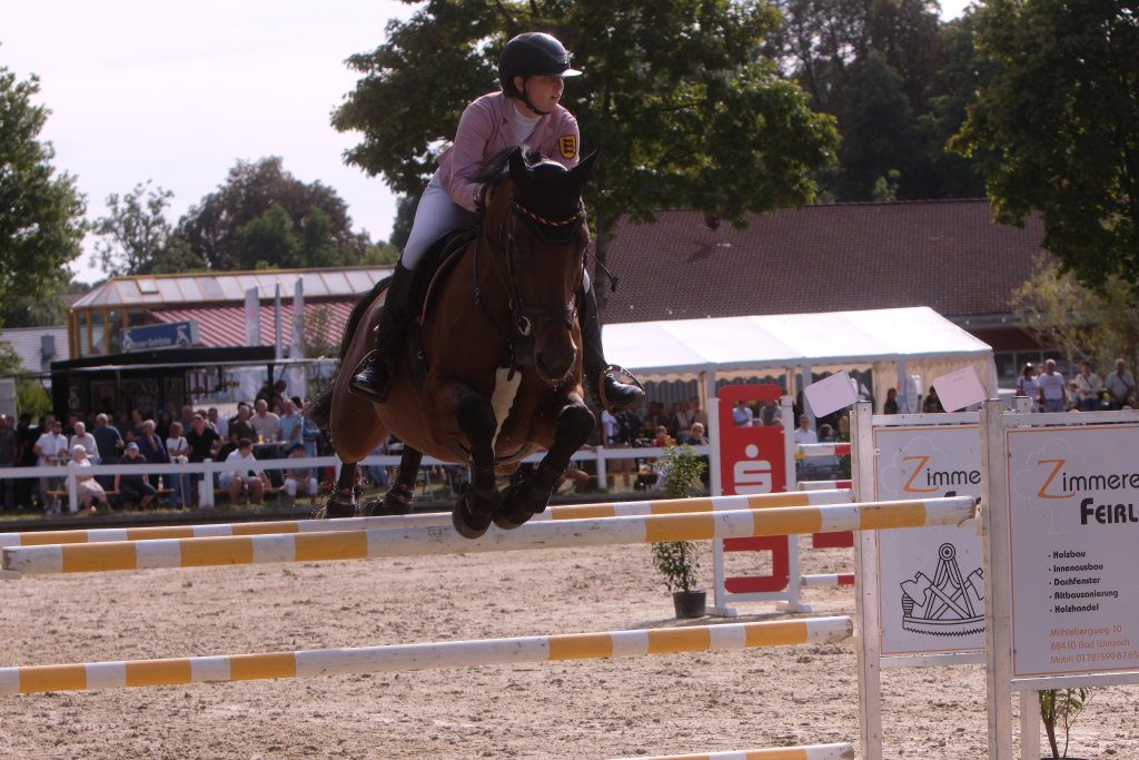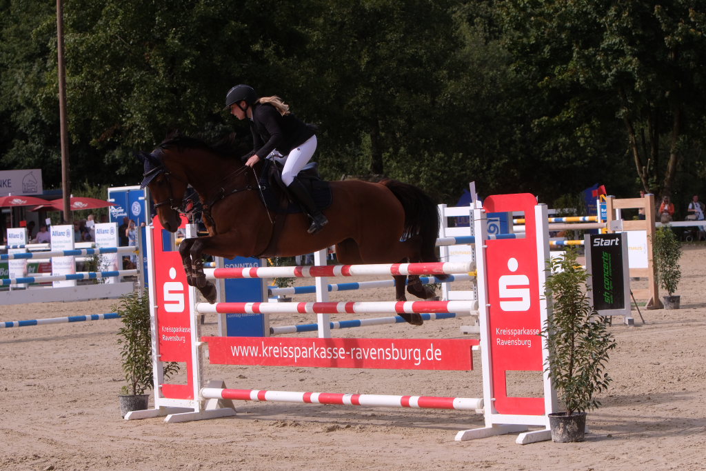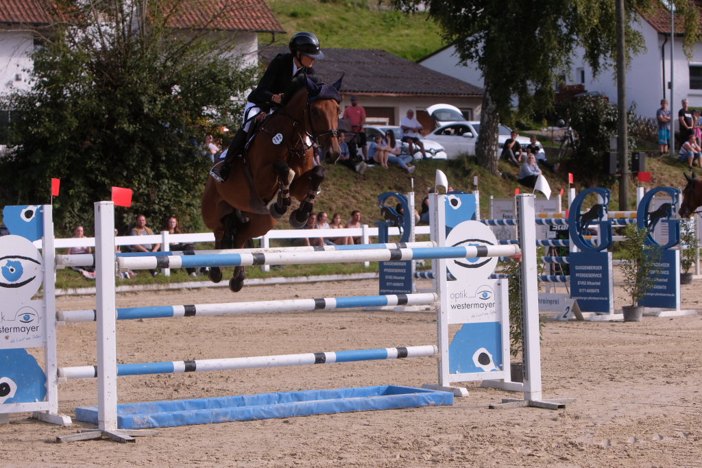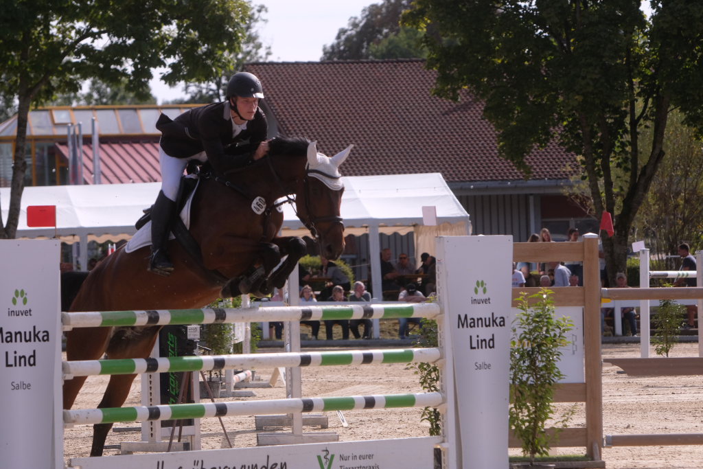Weitere Reiterinnen und Reiter aus der Region schafften den Sprung in die Wertung mit jeweils vier Strafpunkten: Lea Sophia Gut schaffte mit Valentina Platz sechs, Lea Wiest vom RFV Kisslegg mit Cosa Cassandra Platz acht, hinter dem zweiten Pferd (Paco Blue van Breezerhof) von Ralf Rundel schaffte es Maximiliane Fimpel mit Cartagena auf den zehnten Platz. Ganz knapp den Sprung unter die Top Ten verpasste die für den RA SV Hubertus Metzingen startende Slowenin Petra Janic auf Cuyana, die gemeinsam mit India Letizia Fux dem Springen einen Hauch von internationalem Flair verlieh.