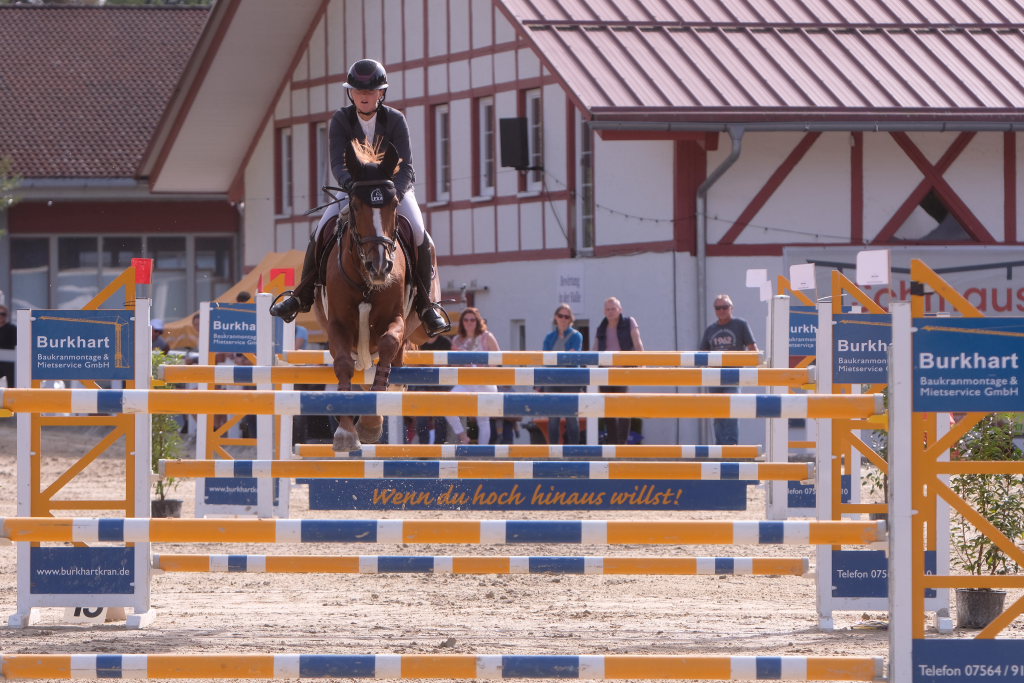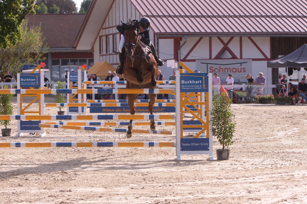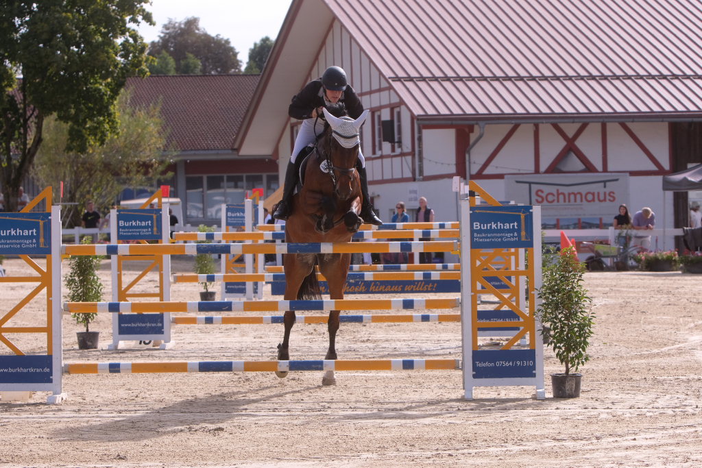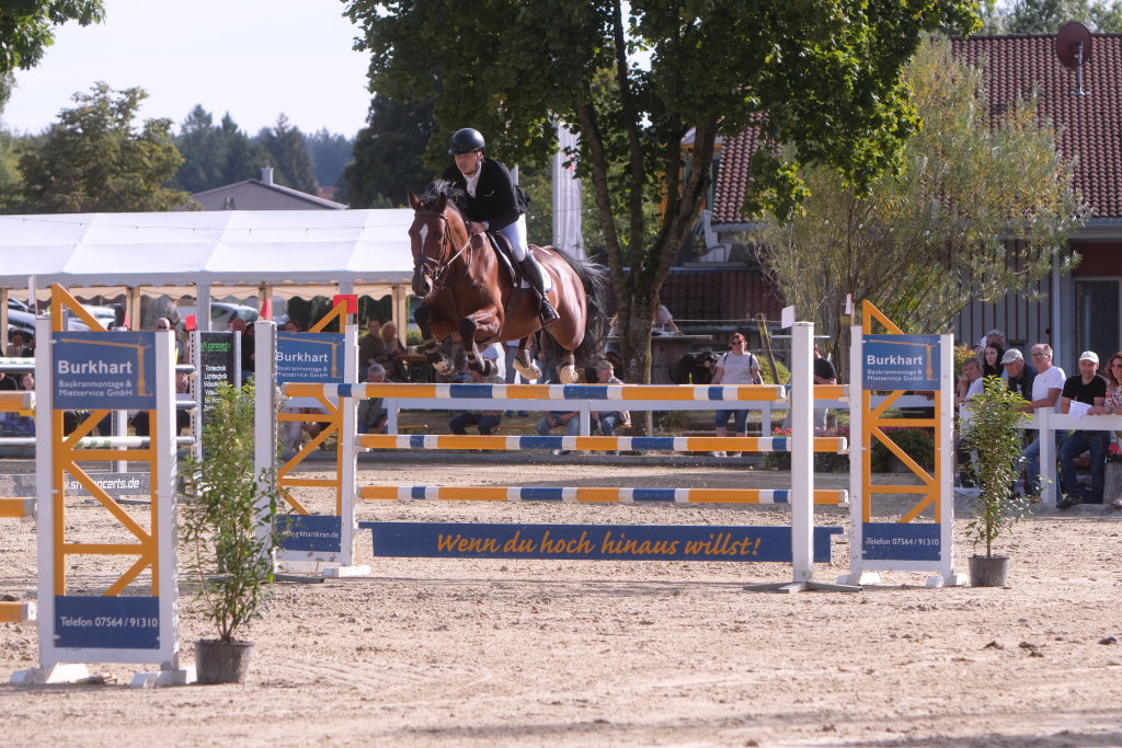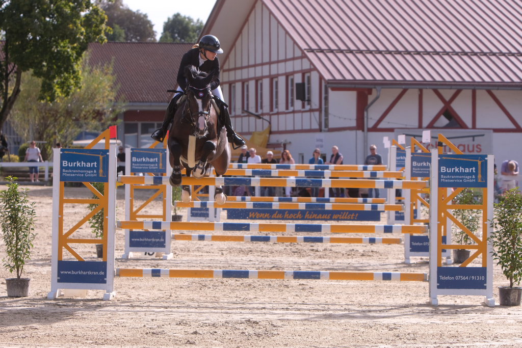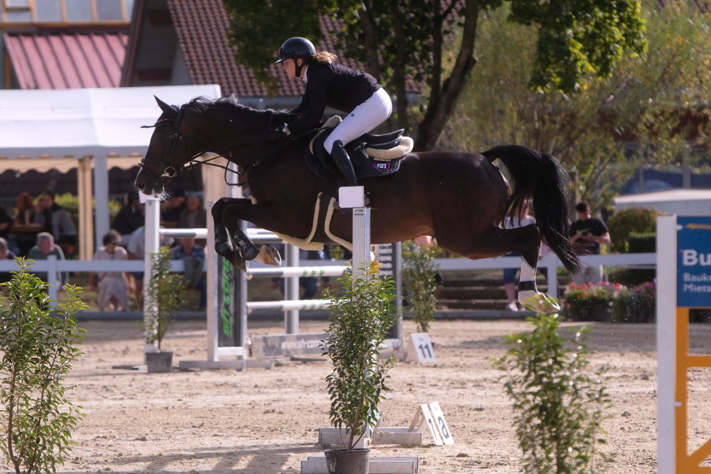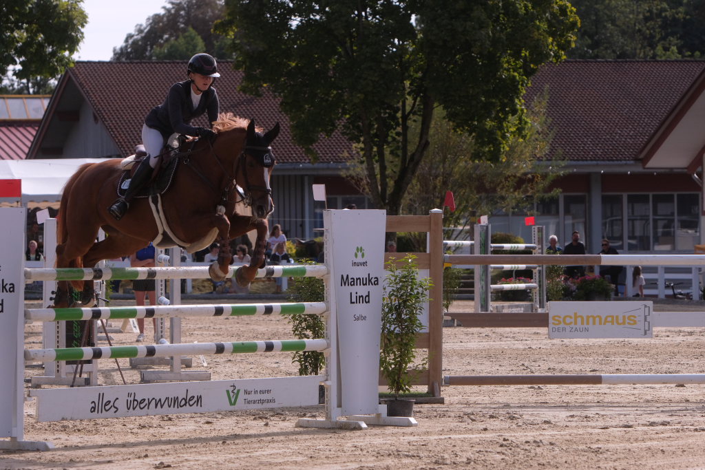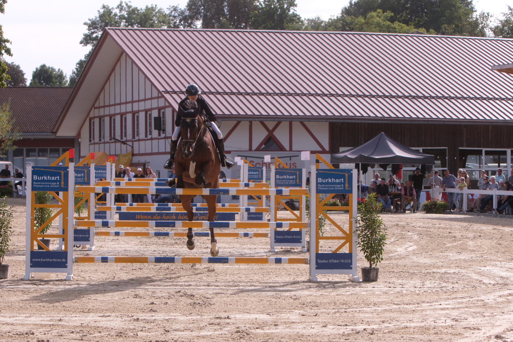 Weitere Reiterinnen und Reiter aus der Region schafften den Sprung in die Wertung mit jeweils vier Strafpunkten: Lea Sophia Gut schaffte mit Valentina Platz sechs, Lea Wiest vom RFV Kisslegg mit Cosa Cassandra Platz acht, hinter dem zweiten Pferd (Paco Blue van Breezerhof) von Ralf Rundel schaffte es Maximiliane Fimpel mit Cartagena auf den zehnten Platz. Ganz knapp den Sprung unter die Top Ten verpasste die für den RA SV Hubertus Metzingen startende Slowenin Petra Janic auf Cuyana, die gemeinsam mit India Letizia Fux dem Springen einen Hauch von internationalem Flair verlieh.