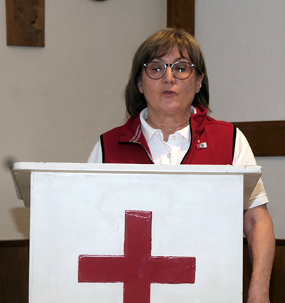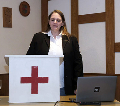 Leonie Hofer trug den Bericht des JRK vor. Die Gruppenabende seien vom wöchentlichen Rhythmus auf 14-täglich umgestellt worden, damit waren es 2025 18 Gruppenabende. Arbeitseinsätze hatten Jugendrotkreuzler beim WuLaLa, am Blutfreitag und beim Stadtfest. Großes Highlight ist alljährlich das Zeltlager für die Kinder und Jugendlichen, an dem im letzten Jahr 80 Kinder und 24 Betreuer teilnahmen. Fleißig dabei sind die Jugendlichen auch bei der JRK-Aktion „Licht für die Alten“. Die sich auch bis nach Berlin herumgesprochen hat, wie die bereits von Petra Greiner erwähnte Preisverleihung beweist.