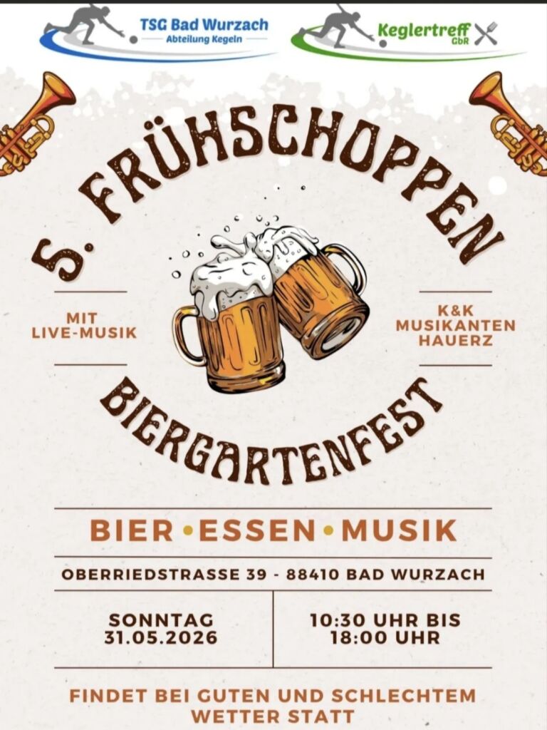 Verpasst keine aktuellen News, Spiele und Veranstaltungen der Kegler und folgt uns auf unserer Homepage oder auf unseren Social-Media-Kanälen. Gerne dürft ihr uns auch bei uns im Keglertreff Bad Wurzach besuchen und bei schönem Wetter Speis und Trank in unserem Biergarten genießen.