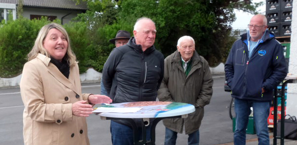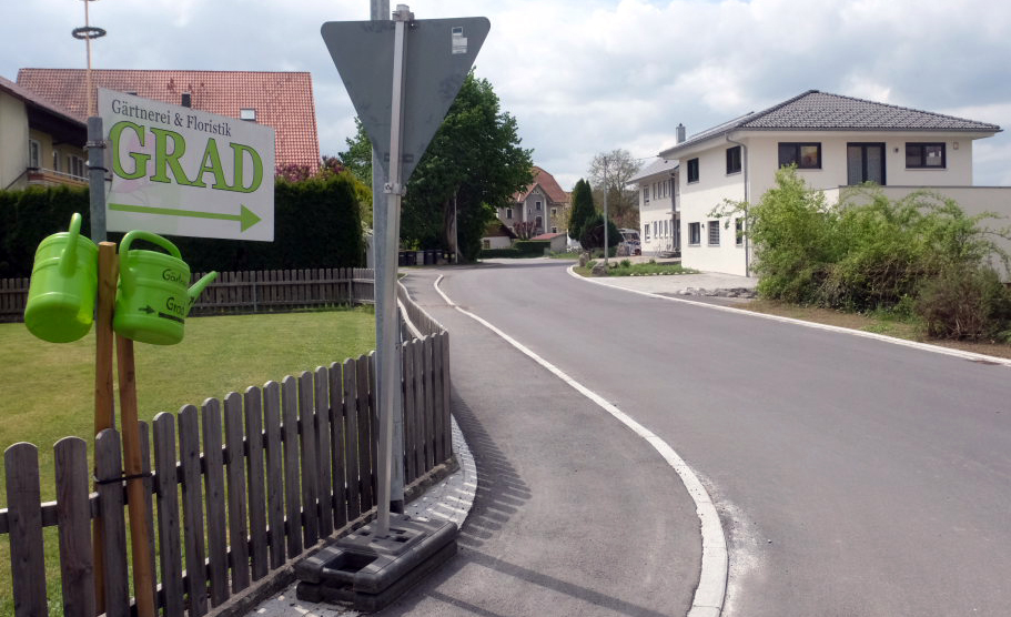 Dass die Anwohner, die neben den Ortschaftsräten sehr zahlreich zu der Feierstunde erschienen waren, großes Verständnis für die Behinderungen während der Bauzeit hatten, habe auch an der hervorragenden Information über den Bauablauf und die Abstimmung durch die ausführende Baufirma Strabag sowie an der Bauleitung des Ingenieurbüros Fassnacht gelegen. Die Bürgermeisterin dankte auch den betroffenen Betrieben, der Gärtnerei Grad und dem Lagerhaus der BAG, für ihr Verständnis, wenn die Zufahrt einmal nicht einfach war.  Scherer lobte in diesem Zusammenhang die Gärtnerei Grad für deren kreative Gießkannen-Wegweiser, mit denen die Kunden auf die ausgeschilderte Umleitung hingewiesen wurden.