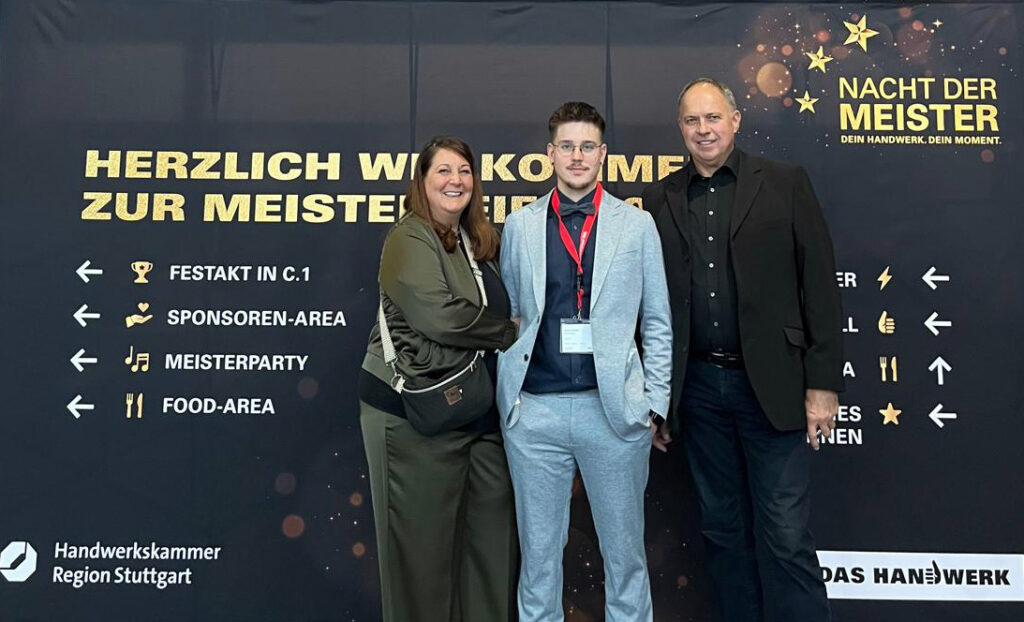 Sven Lauber mit Eltern beim Fest in Stuttgart. Foto: Handwerkskammer