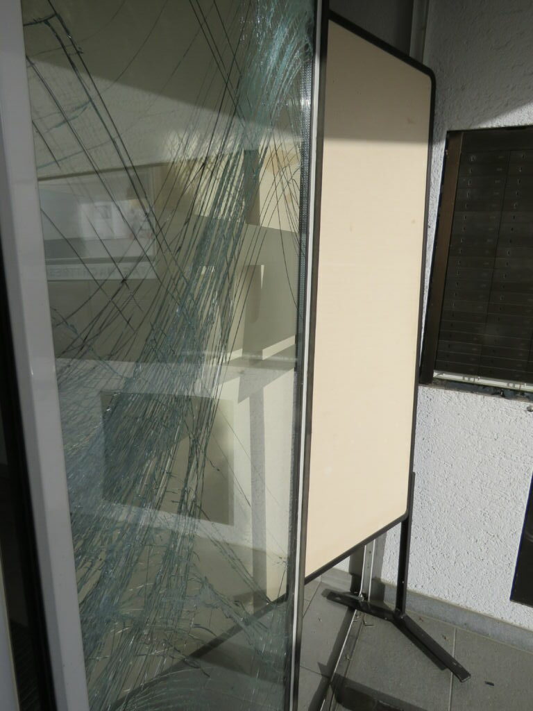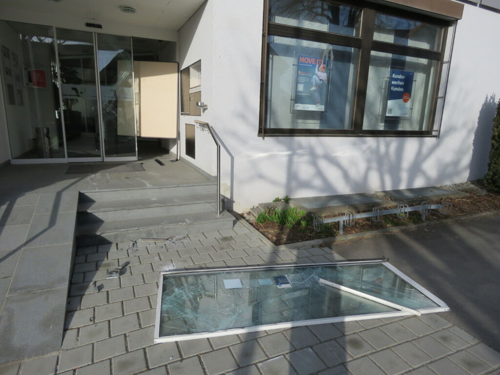 Spuren der Gewalt am und vor dem Arnacher Bankgebäude. Fotos (3): Gerhard Reischmann