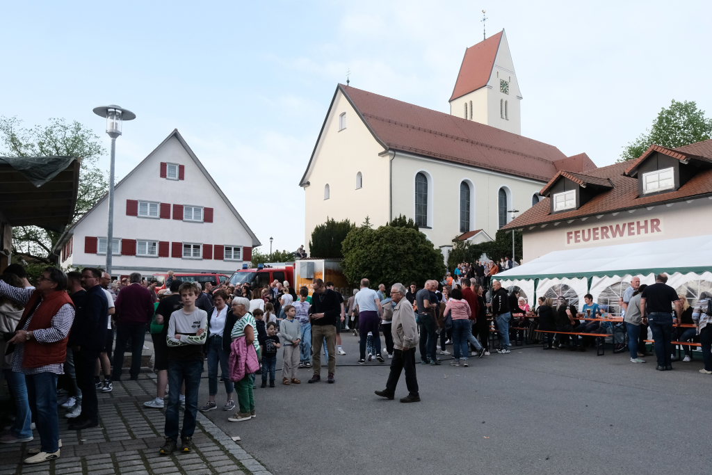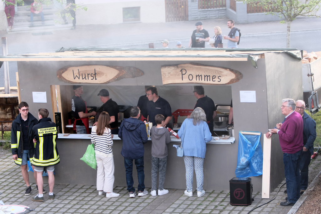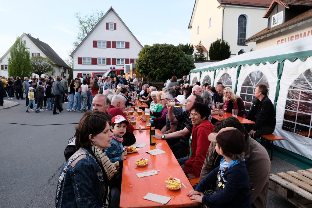 Beim anschließenden gemütlichen Hock in den Mai wurden die Besucher von den Feuerwehrkameraden wieder mit Gegrilltem und Getränken bewirtet. Und weil der wunderbare Frühlingsabend dazu einlud, im Freien zu feiern, wurden rasch noch zusätzliche Biertisch-Garnituren aufgestellt.