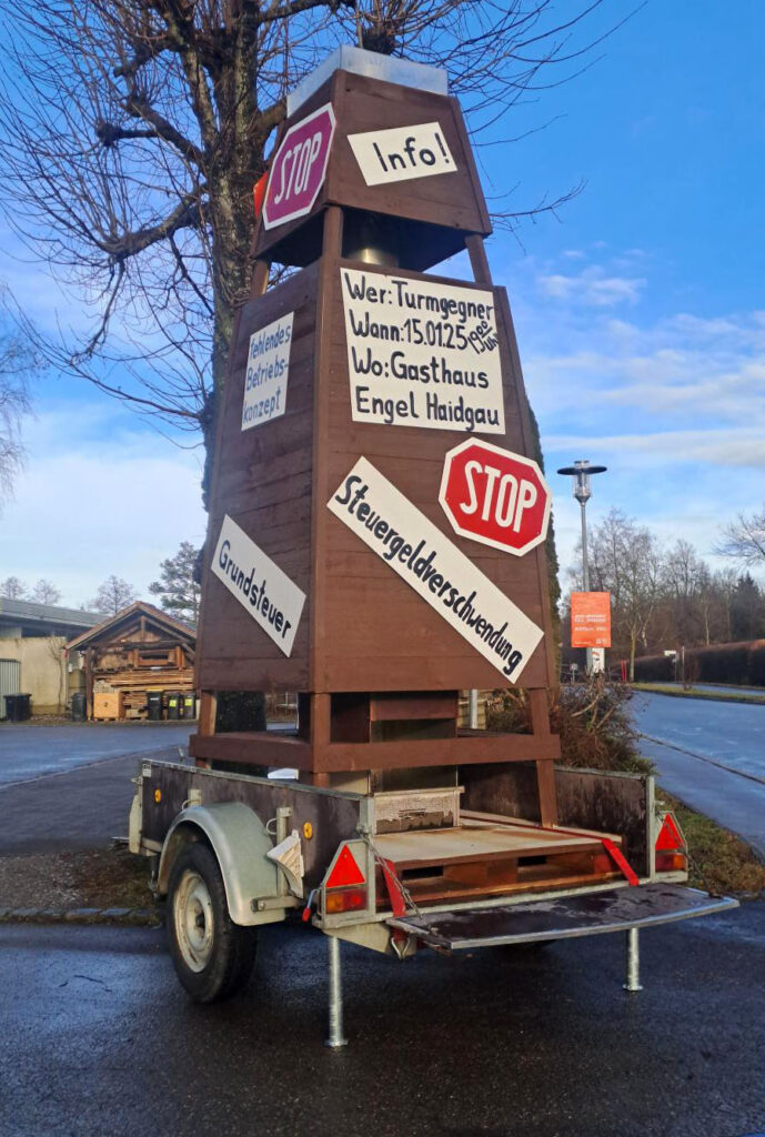 Bad Wurzach – Die Turmgegner laden zu einer Informationsveranstaltung am Mittwoch, 15. Januar, im Gasthaus „Engel“ in Haidgau ein. Herbert Birk und Andreas Bader von der Initiative „Bürgerbegehren“ schreiben hierzu: