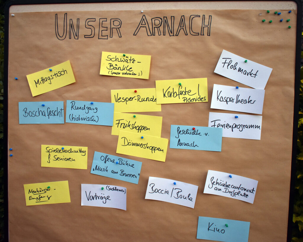 Eine Tafel mit vielen Ideen zur Dorf-Gemeinschaft