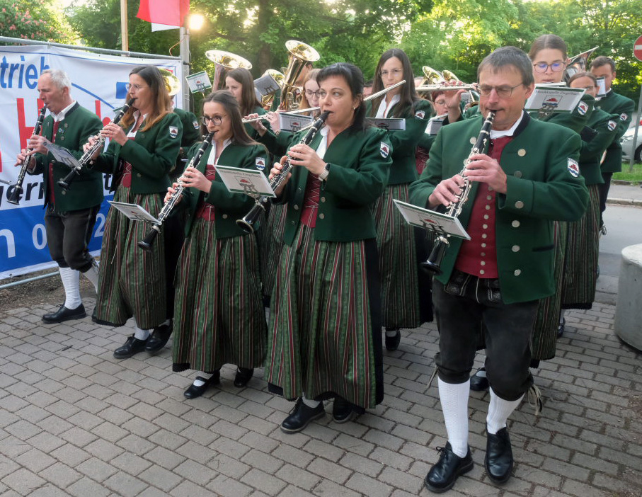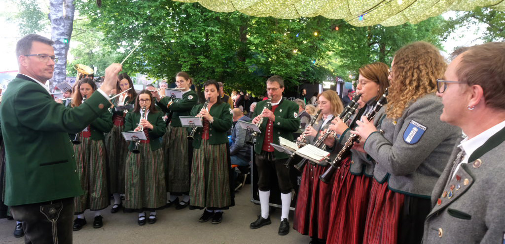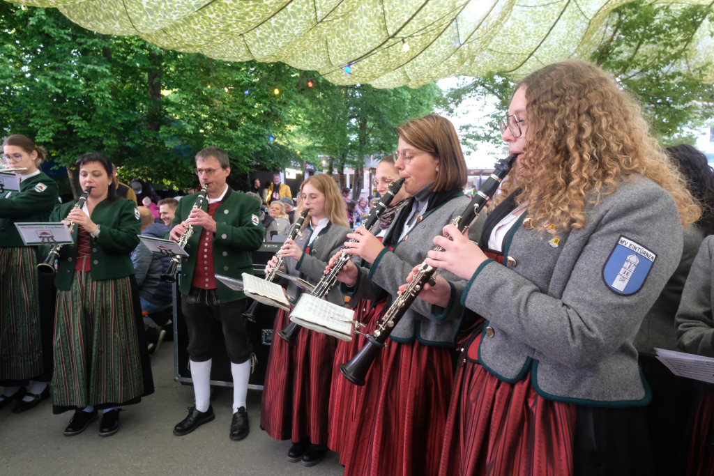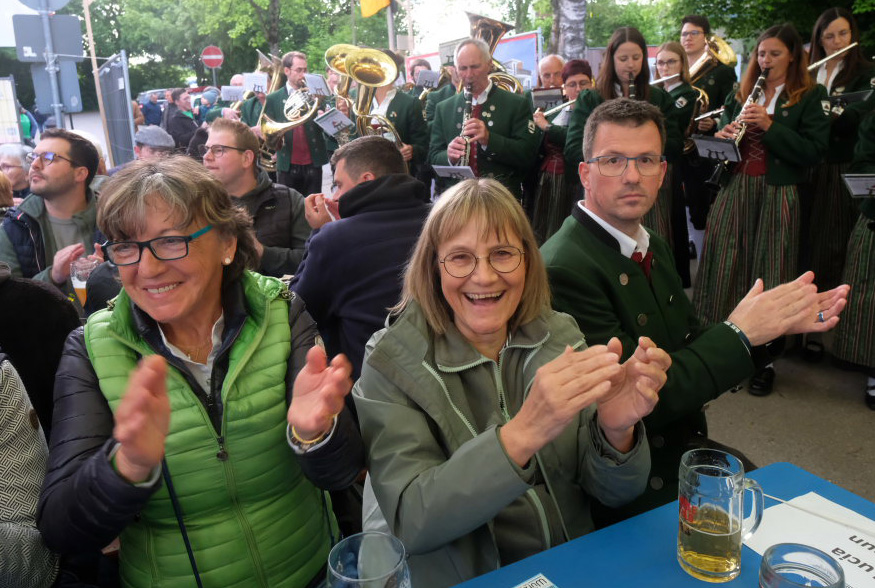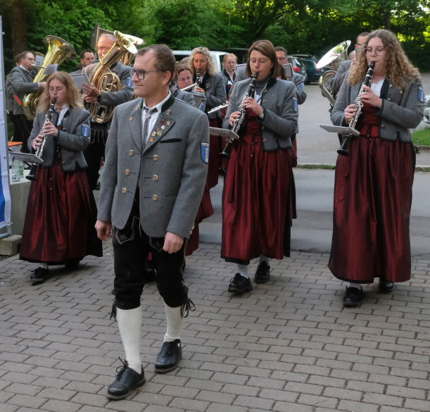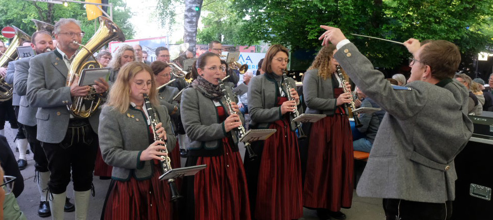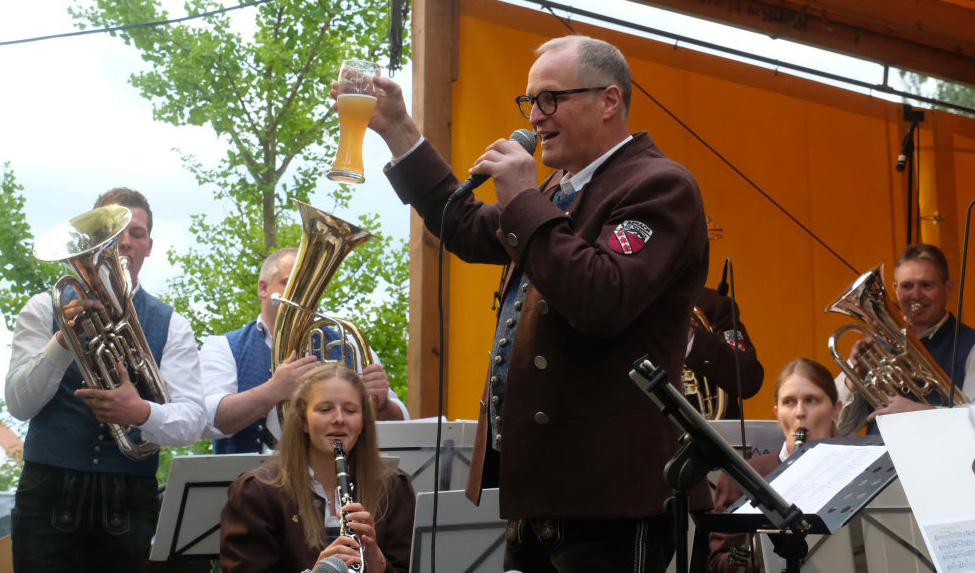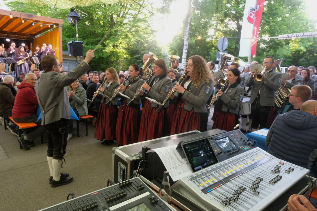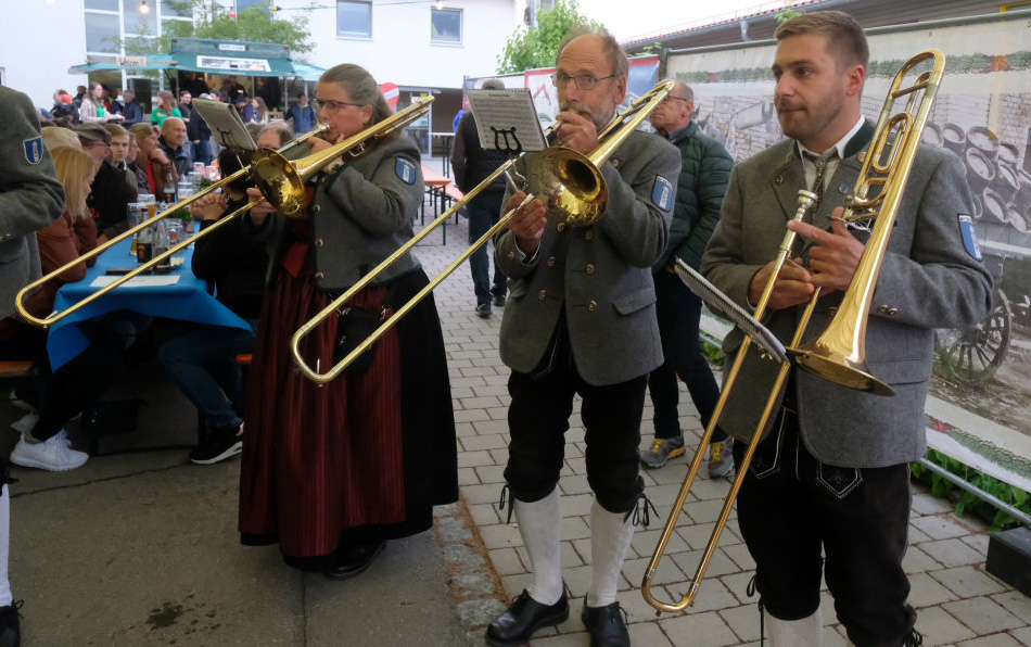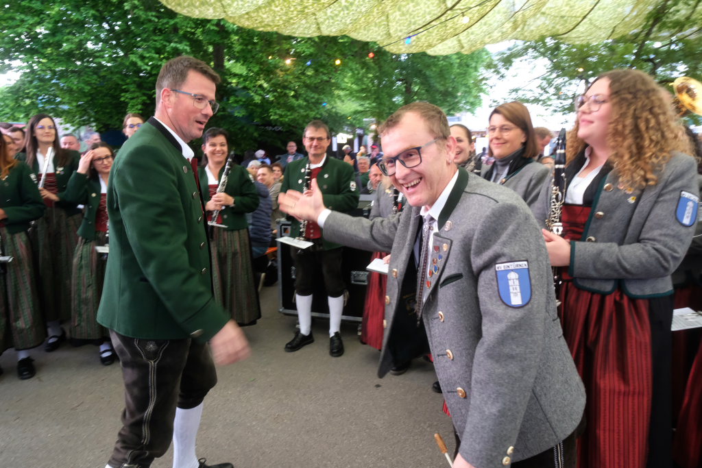 Natürlich kamen auch verschiedene Musikvereine aus der Region zu dem Feierabend-Event, zu dem eine kleine Besetzung der Musikkapelle Arnach mit ihrem Dirigenten Berthold Hiemer die passende Stimmungsmusik vom Marsch „Die Sonne geht auf“ über Blasmusikklassiker wie die „Vogelwiese“ bis hin zu Pop-Balladen wie „The Story“ lieferten.