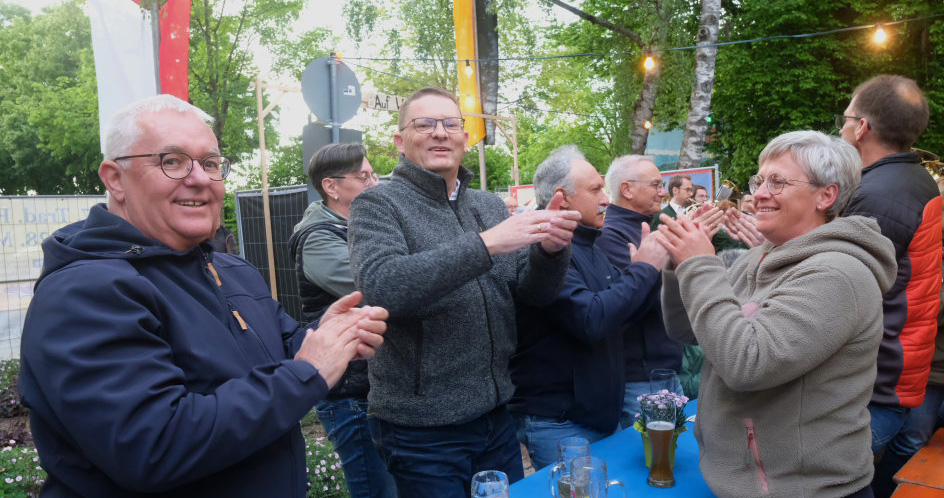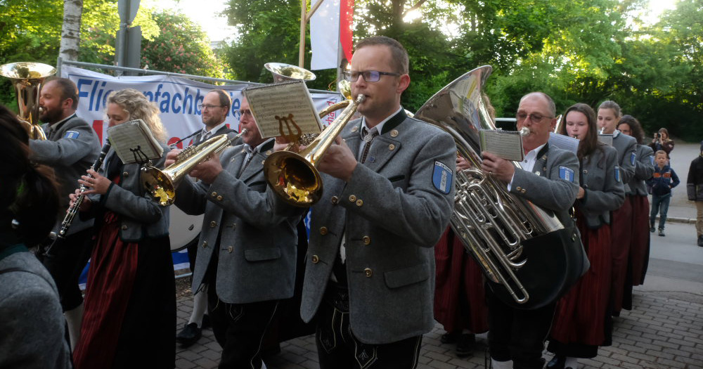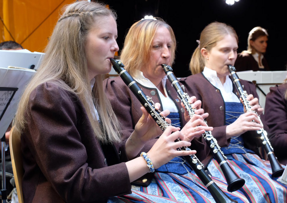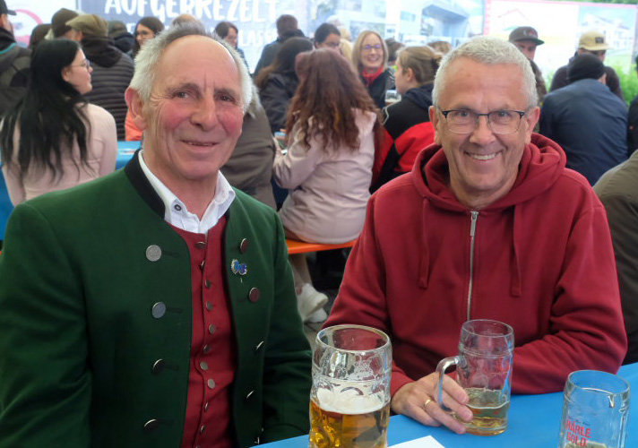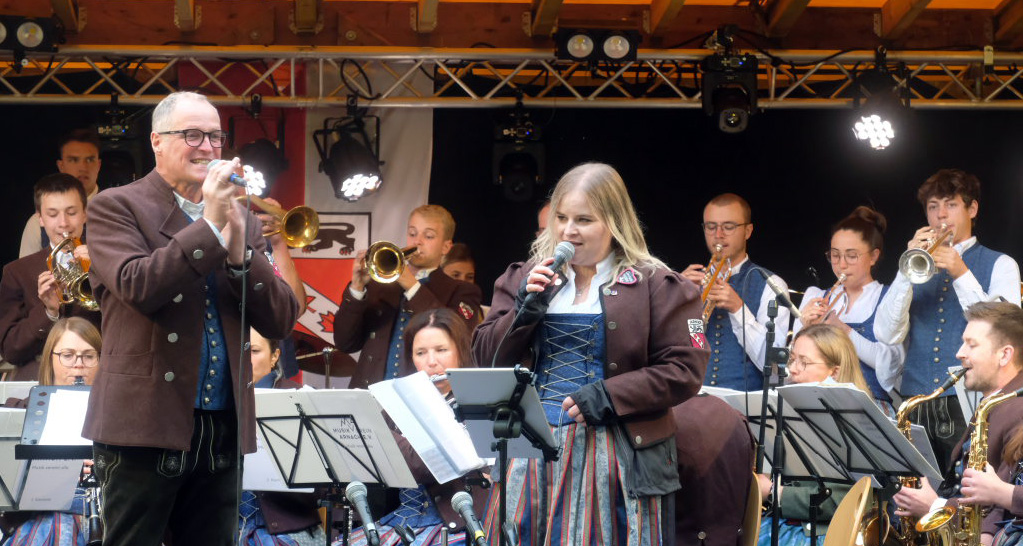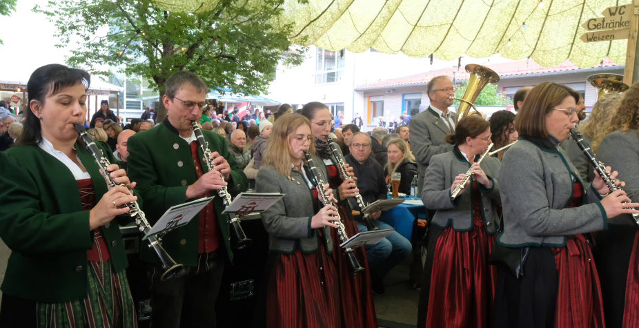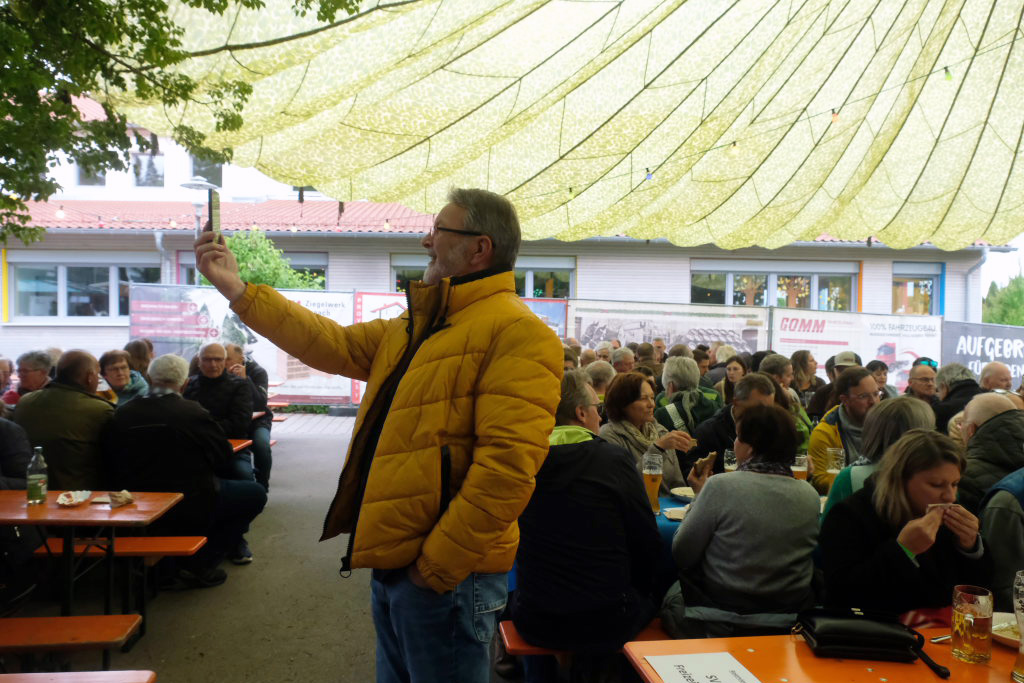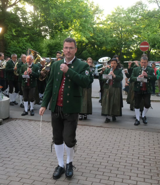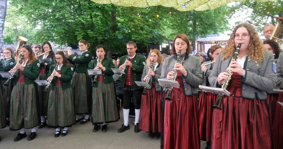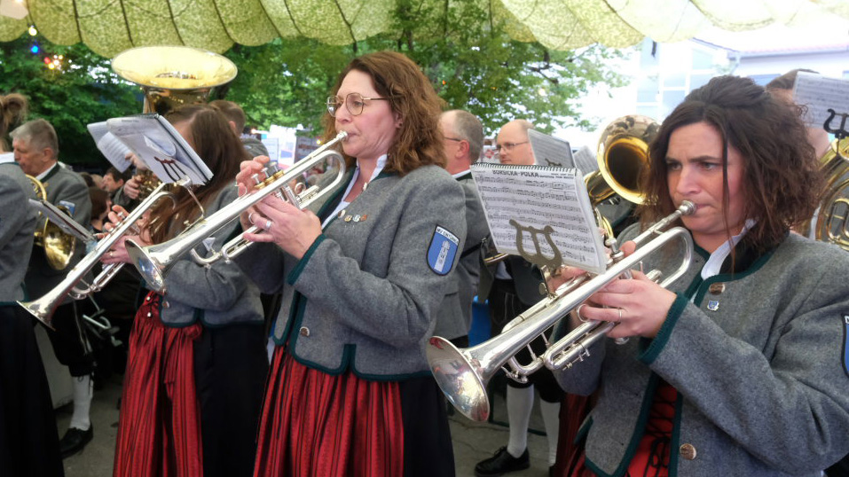 Natürlich kamen auch verschiedene Musikvereine aus der Region zu dem Feierabend-Event, zu dem eine kleine Besetzung der Musikkapelle Arnach mit ihrem Dirigenten Berthold Hiemer die passende Stimmungsmusik vom Marsch „Die Sonne geht auf“ über Blasmusikklassiker wie die „Vogelwiese“ bis hin zu Pop-Balladen wie „The Story“ lieferten.