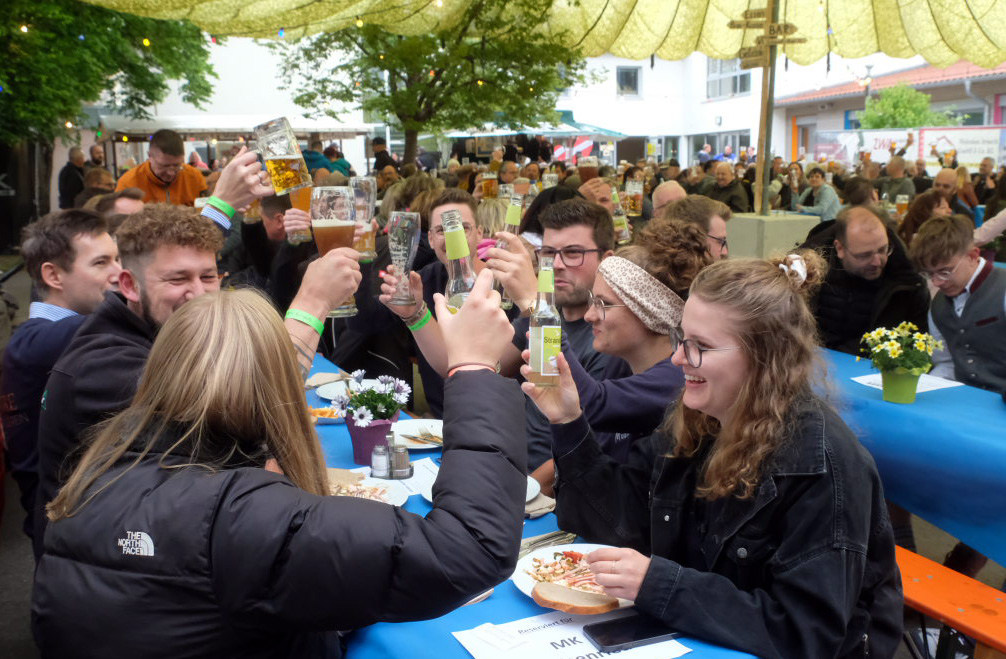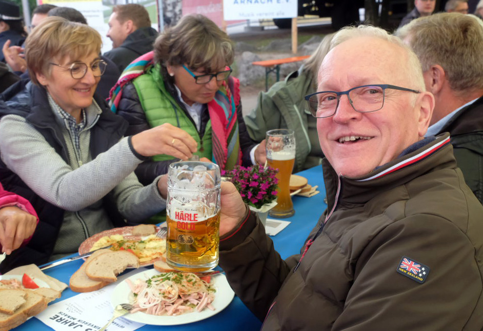 Denn Ruckzuck waren die im Schulhof vor der kleinen Bühne aufgestellten Biertische bereits im Vorverkauf „verkauft“. Etwa an die örtlichen Vereine wie Sportverein und Kirchenchor, aber auch ein Kegelclub war unter den Gästen, sich jeweils ein Gesamtpaket (Tisch für acht Personen mit zwei Getränken und einmal Vesper pro Person) sicherten. Der Arnacher Ortsvorsteher Manfred Braun hatte sich selbstverständlich ebenfalls für Familie und Freunde ein Paket bestellt.