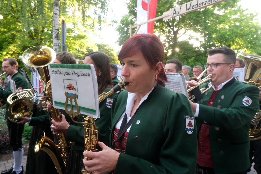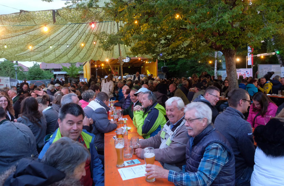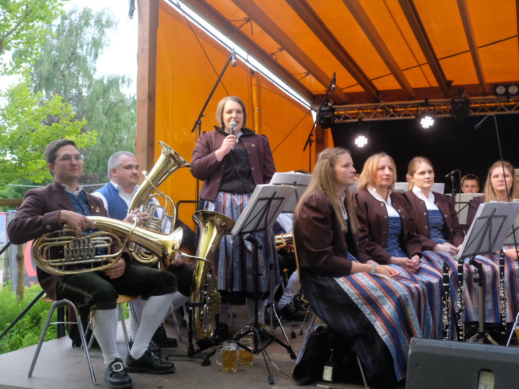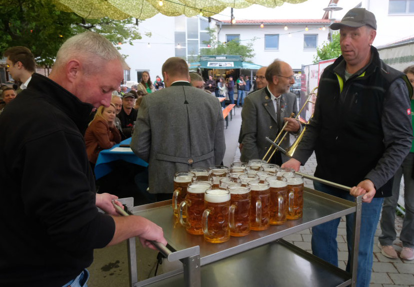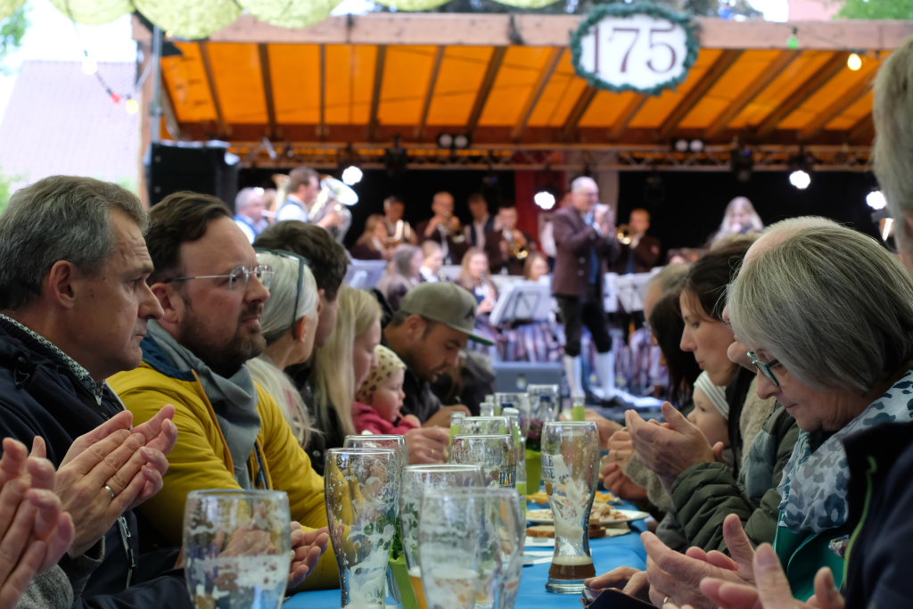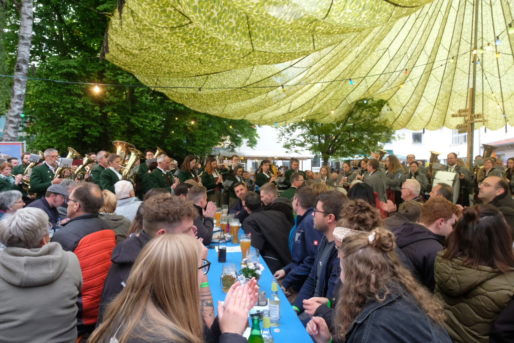 Begeistert zeigten sich die Gäste auch von der sehr guten Organisation. Von der Bonkasse bis zum selbstabgeholten Essen – neben den Vespervariationen Wurstsalat und Saurer Käs´ gab es auch die übliche Rote, Steak und Pommes – lief alles wie am Schnürchen. Die Getränke wurden von bienenfleißigen Musikerinnen und Musikern an die Tische gebracht.