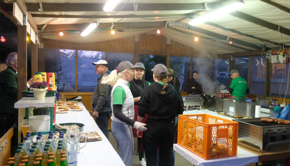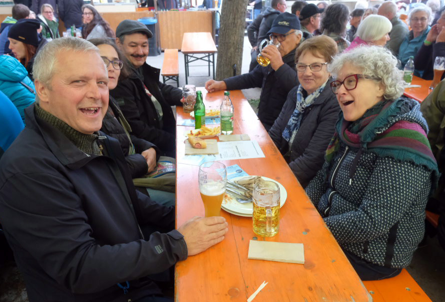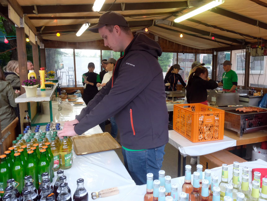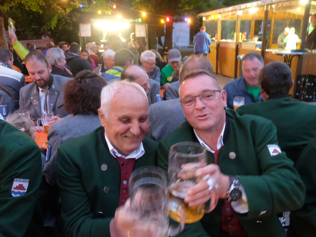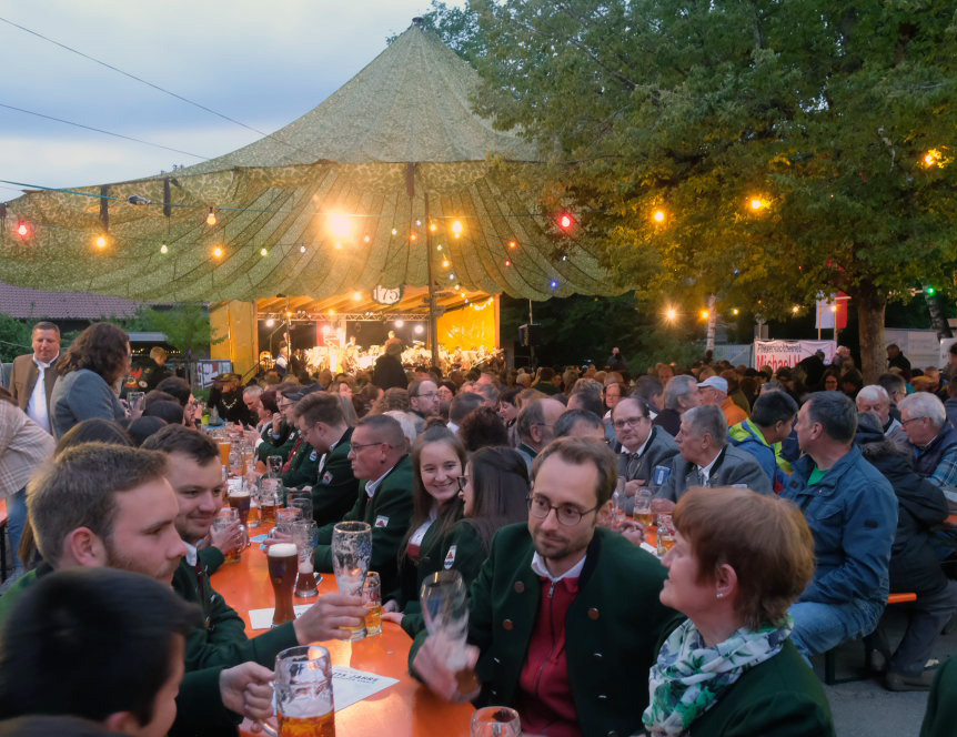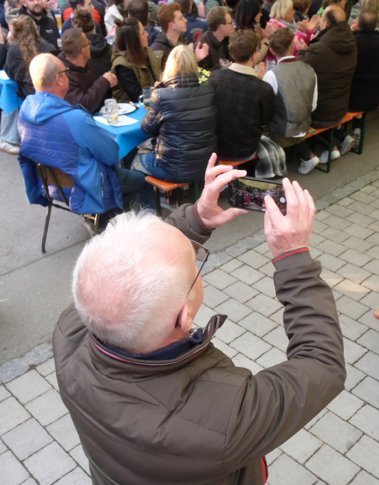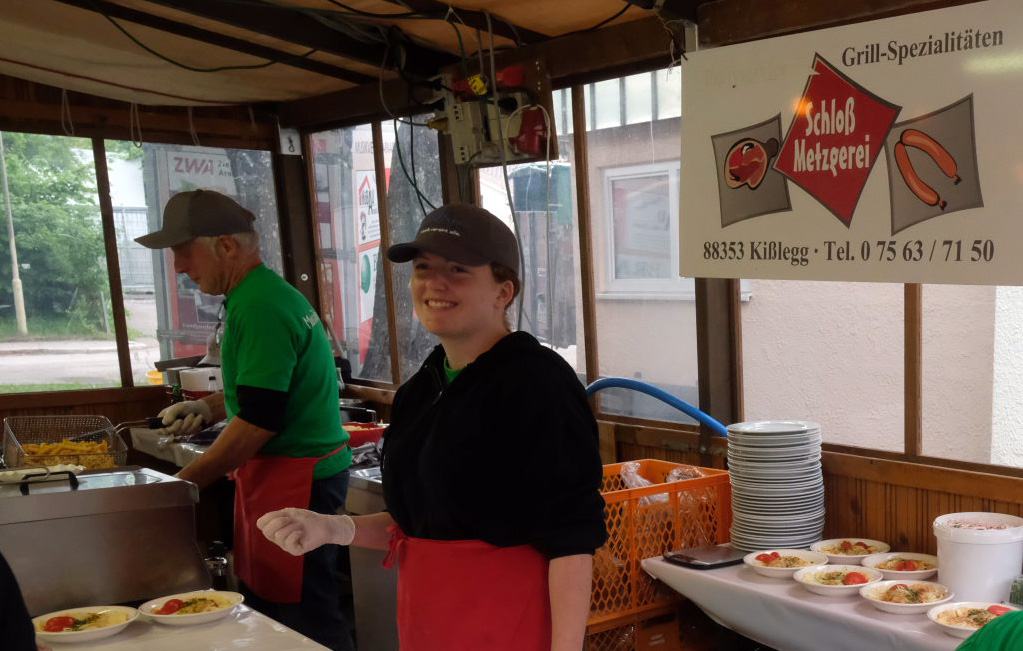 Begeistert zeigten sich die Gäste auch von der sehr guten Organisation. Von der Bonkasse bis zum selbstabgeholten Essen – neben den Vespervariationen Wurstsalat und Saurer Käs´ gab es auch die übliche Rote, Steak und Pommes – lief alles wie am Schnürchen. Die Getränke wurden von bienenfleißigen Musikerinnen und Musikern an die Tische gebracht.