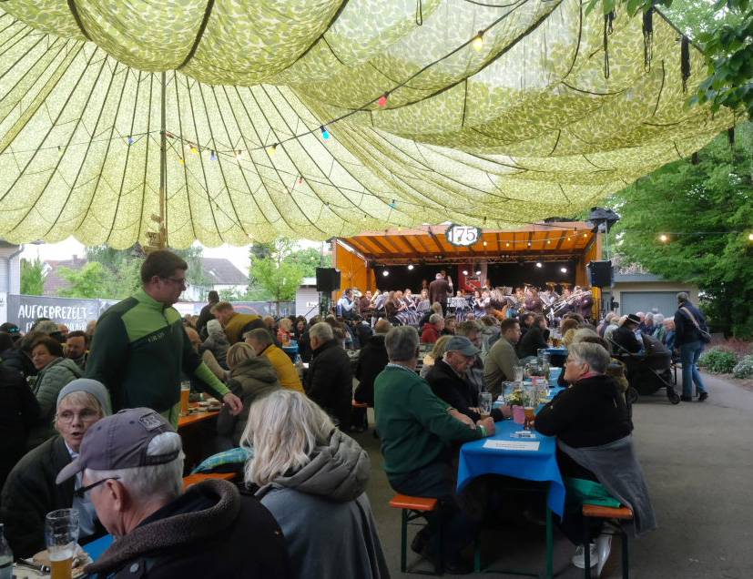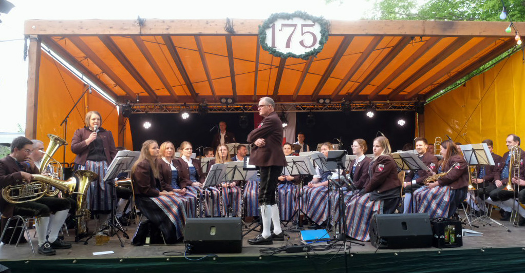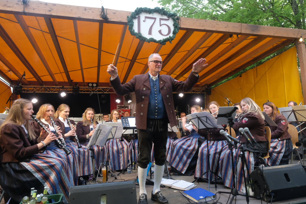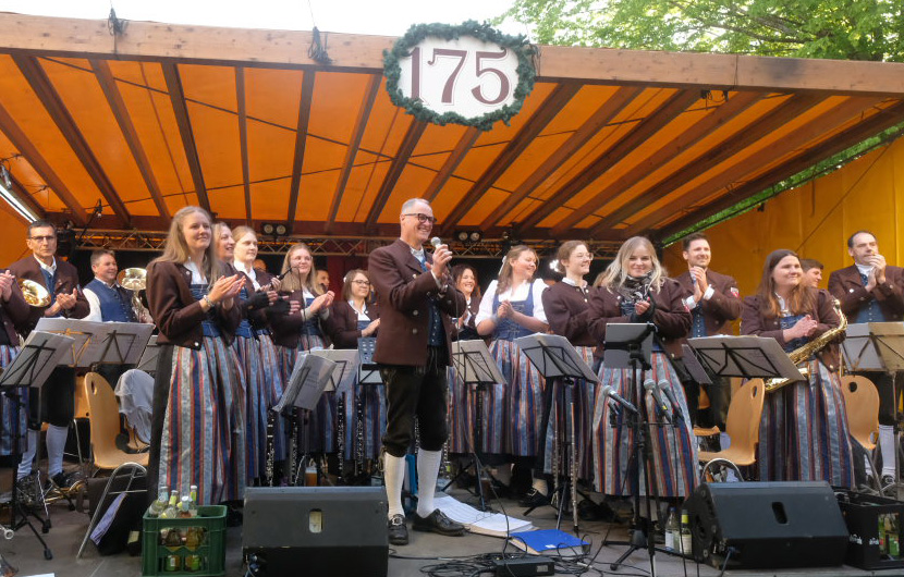 Arnach – Der Musikverein Arnach feierte sein 175-jähriges Bestehen mit einem dreitägigen Festprogramm. Am Freitagabend (23.5.) ging es mit einem Vesperabend mit Dämmerschoppen-Musik im Schulhof des Bildungshauses los.