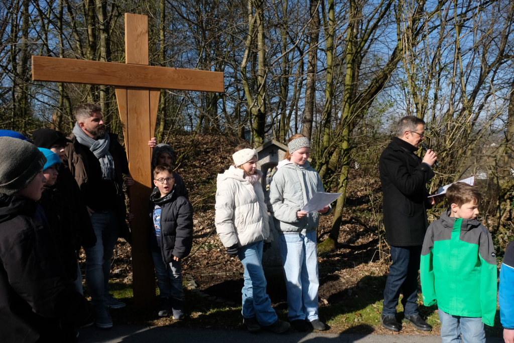 Der Kreuzweg stammt aus dem Jahre 1899. Eine unbekannte Künstlerin bzw. ein unbekannter Künstler hatte die 14 Kunstbilder über das Leiden und Sterben Jesu aus glasiertem Ton dargestellt. „Sie nehmen uns mit hinein in das Geschehen vor über 2000 Jahren und lassen uns innehalten. Mit ihm sind wir getragen von der Glaubenshoffnung, dass dieses Dunkel vom Osterlicht erhellt werden wird. Dass der Tod nicht das letzte Wort hat. Dass das Leben siegt.“