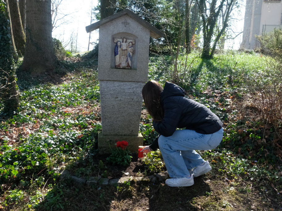 Und schließlich die letzte Station: „Der Leichnam Jesu wird ins Grab gelegt“, das Bild, das den Karfreitag prägt: „Sie rollen einen großen Stein vor den Eingang der Höhle. So wird die Totenruhe von niemandem gestört. Dann gehen die Freunde traurig weg.“ Und doch ist das der Anfang eines göttlichen Neubeginns.