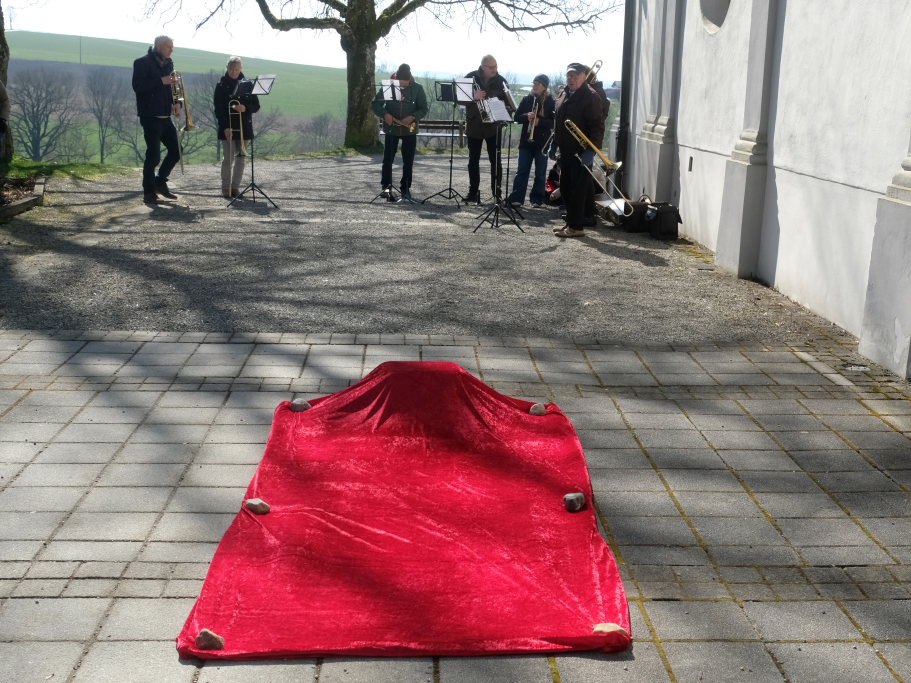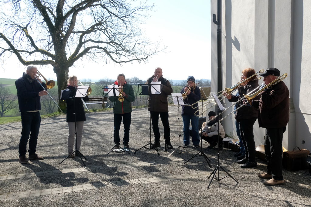 Mit dem Dank seitens von Raimund Miller an alle Beteiligten, die in irgendeiner Form zum Gelingen der Prozession beitrugen, sowie noch weiteren Kirchenliedern, gespielt vom evangelischen Posaunenchor, endete der diesjährige Familienkreuzweg.