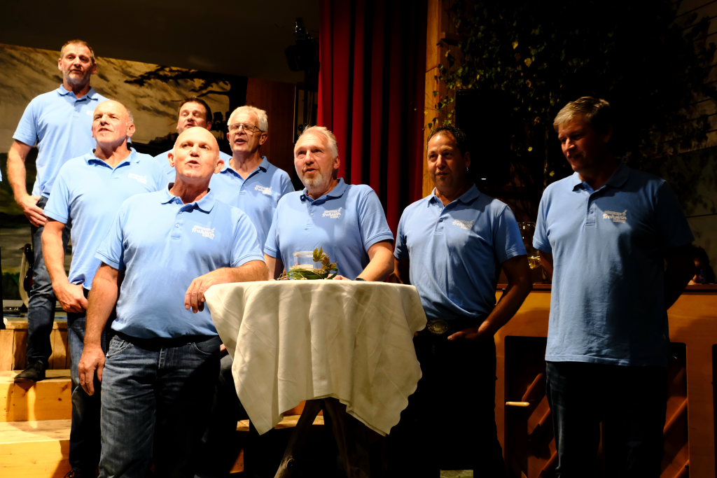 Mit „Mir send die letschte an der Bar“ und dem „Schwiegermutterlied“ bewiesen die Seibranzer Sänger, dass man mit Musik auch durchaus Humorvolles zum Ausdruck bringen kann, was auch kein Wunder ist, wenn man als Moderator einen wie Willi Butscher in seinen Reihen hat.