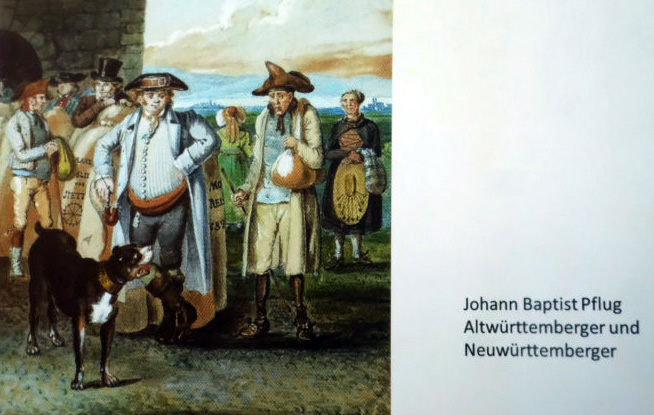 Ein Bild von Johann Baptist Pflug, das Wild präsentierte, zeigte die großen Unterschiede zwischen Altwürttembergern und Neuwürttembergern auf: Während der Altwürttemberger, also der Unterländer, ein verkniffenes, spindeldürres Männchen war, zeigt der Oberschwabe, was er hat: Einen zur Korpulenz neigenden Körper, viel Selbstbewusstsein und diverse Statussymbole.