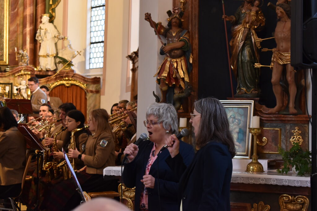 Eine Hommage an den schwedischen Kinofilm „Wie im Himmel“ aus dem Jahr 2004 war das weltbekannte Gesangsstück „Gabriellas Song“, das die beiden Chorsängerinnen Carola Gut und Tanja Pfeiffer zweistimmig auf Schwedisch zum Besten gaben, sanft begleitet von den Musikanten.