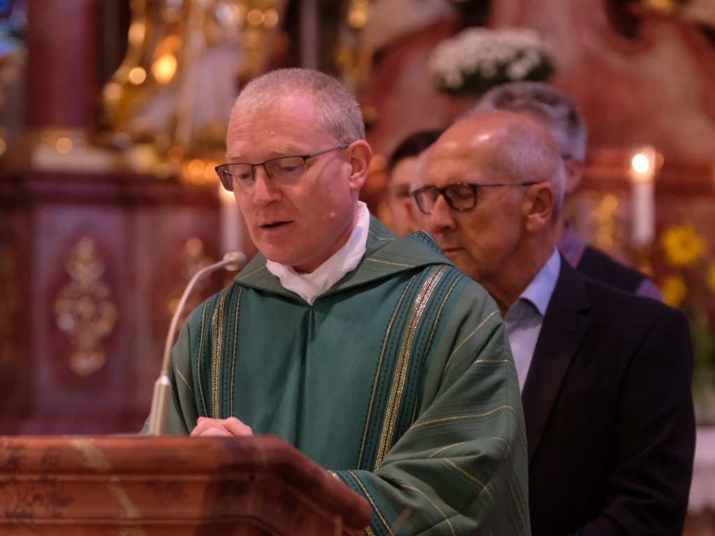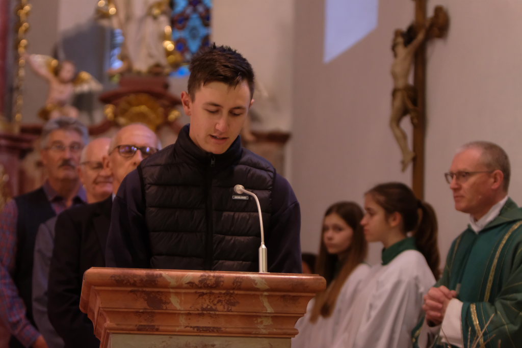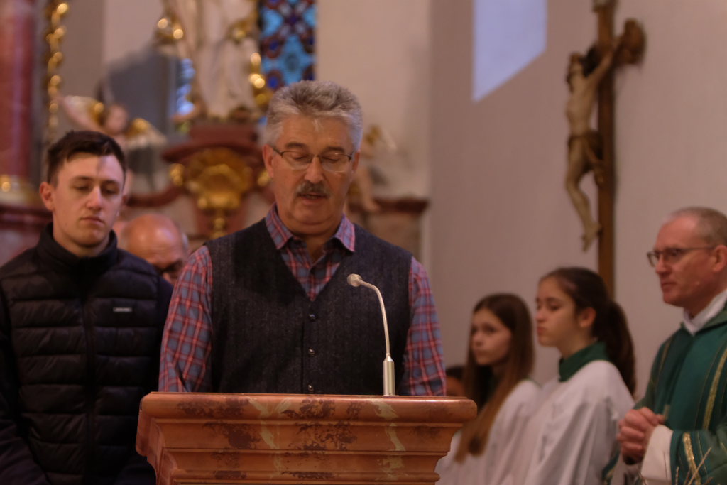 Pfarrer Meschenmoser ging in seiner Ansprache auf das Evangeliumswort aus dem Matthäus-Evangelium ein, in dem das Doppelwort vom Salz und Licht behandelt wird. Darin heißt es unter anderem: Man zündet nicht eine Leuchte an und stellt sie unter einen Scheffel, sondern auf den Leuchter, dann leuchtet sie allen im Haus. So soll euer Licht vor den Menschen leuchten, damit sie eure guten Taten sehen und euren Vater im Himmel preisen.“ Vieles war den Menschen im Mittelalter rätselhaft und nicht bewusst: Wir sind unterwegs, kommen aus der Vergangenheit, leben in der Gegenwart und gehen in die Zukunft. Eine Generation kommt, eine andere geht, das Leben befindet sich in einem ständigen Wandel, und so habe sich auch das Bild von Ziegelbach, das erstmalig 1275 im „Liber decimationis“, dem Zehntbuch des Bistums Konstanz, Erwähnung fand, gewandelt. Aber was bleibt, ist der christliche Glaube. Es war über die Jahrhunderte die Aufgabe der Christen, für bleibende geistige und soziale Werte zu sorgen. 750 Jahre Ziegelbach seien ein Grund zu danken, besonders die letzten 80 Jahre in Frieden. Lasst uns daher dem Leben trauen, weil Gott es mit uns lebt.