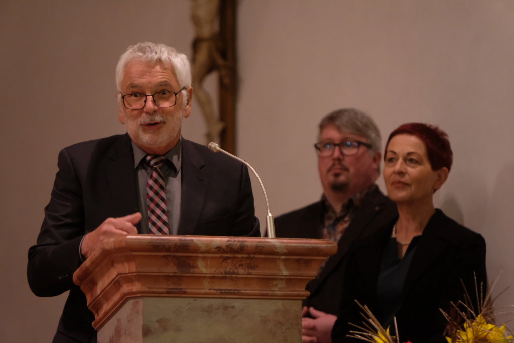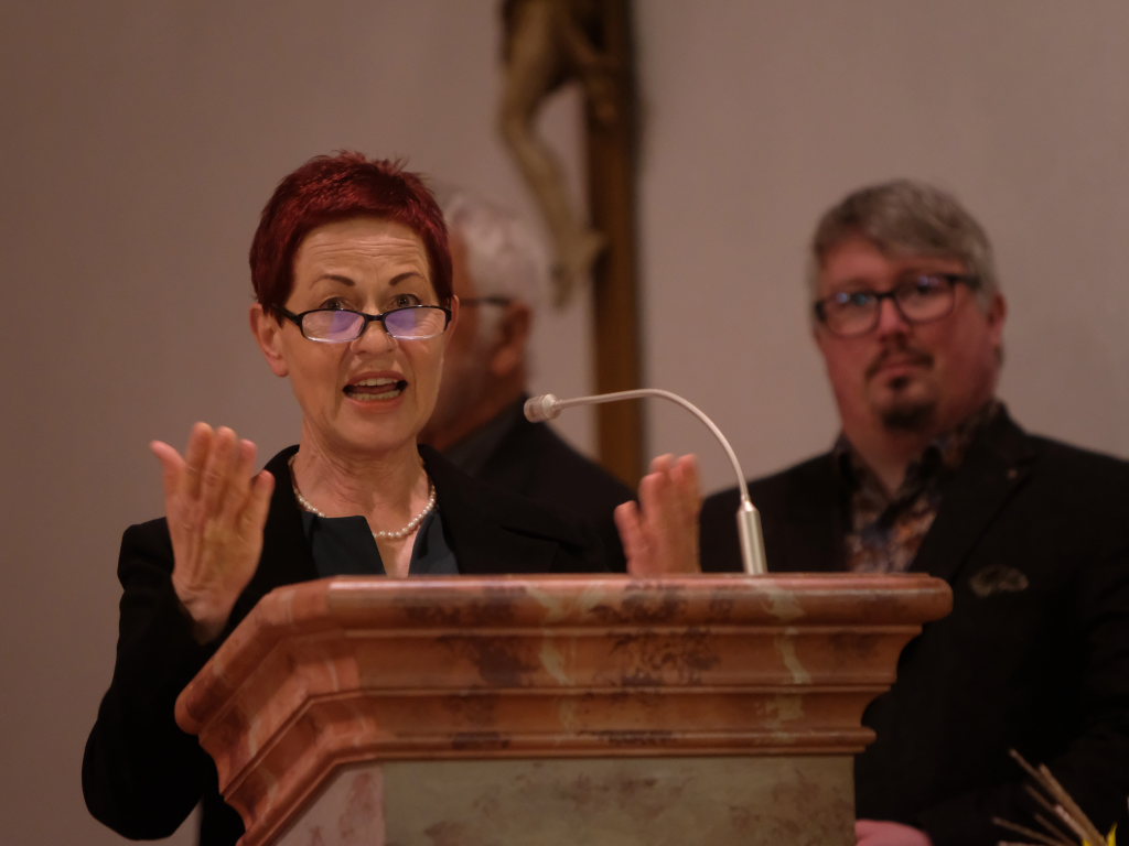 Ziegelbach – Die Feier anlässlich der 750-jährigen erstmaligen urkundlichen Erwähnung der Pfarrgemeinde und der Ortschaft begann mit einem Novum. Nach dem vom Kirchenchor musikalisch begleiteten Festgottesdienst wurden die Festreden von Ortsvorsteherin Sybille Schleweck, dem Bürgermeister-Stellvertreter Klaus Schütt und Stadtarchivar Michael Tassilo Wild gleich vor Ort in der Kirche „Zu Unserer lieben Frau“ gehalten.