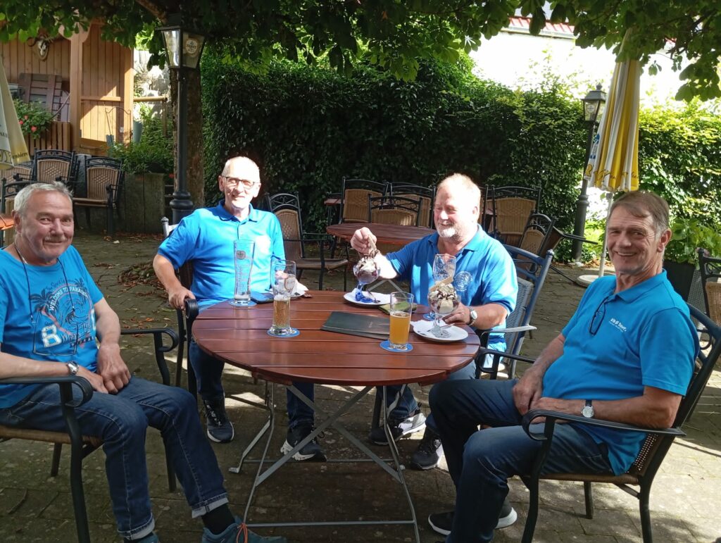Etwas enttäuscht waren die Senioren über ihre Ergebnisse: Charly, Erich, Clemens und Roland hatten sicherlich bessere Platzierungen erhofft. Trotzdem ließ man es sich nicht nehmen, zum Abschluss auf dem Heimweg, noch ein kühles Bier und einen Eisbecher zu genehmigen.