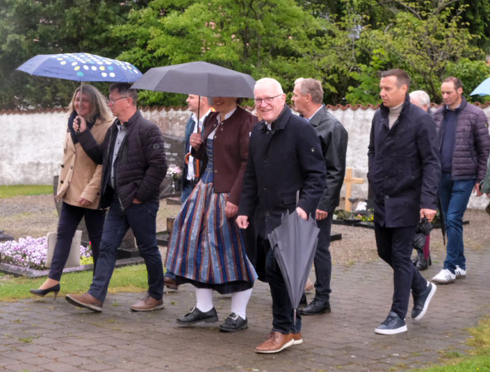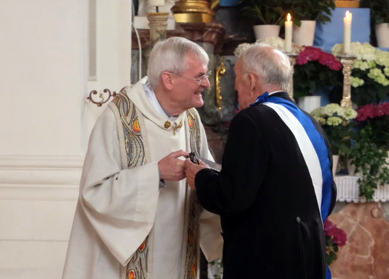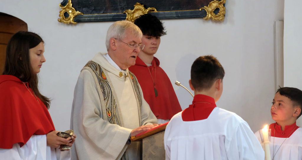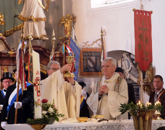 Pater Konrad Werder, der Superior des Gottesberges und damit der oberste Geistliche im für das Heiligblutfest in Bad Wurzach zuständigen Wallfahrtsausschuss, hielt am Ende des Festgottesdienstes eine kleine Laudatio auf das Wirken der Arnacher Blutreiter, die es seit 1925 gibt, und damit sogar drei Jahre länger als die Reiterprozession in Bad Wurzach (damals nahmen die Arnacher am Weingartener Blutritt teil). „Seither hat Ihre Gruppe viel öfter als 100-mal an religiösen Festen mit Reiterprozessionen teilgenommen“, sagte Pater Konrad. Etwa in Weingarten, Bad Wurzach und noch bei anderen Reiterprozessionen in der Region.