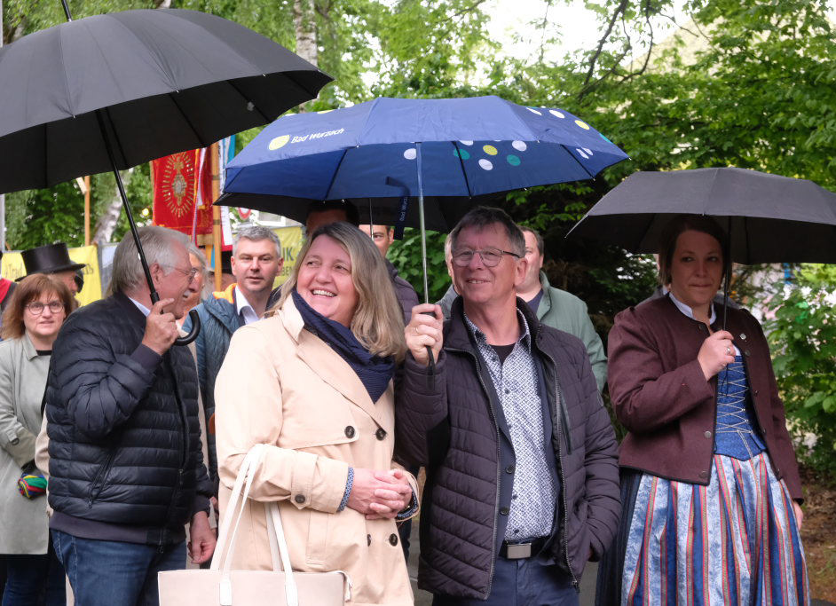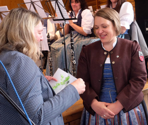 Bürgermeisterin Alexandra Scherer betonte die Wichtigkeit der Vereine für das Dorfleben. Seit 175 Jahren träfen sich in Arnach Musiker/innen um das kulturelle Leben, kirchlich oder weltlich, würdig zu umrahmen. Sie betonte auch, dass der MV Arnach mit der Beteiligung an Kurkonzerten und dem Stadtfest mithelfe, den Zusammenhalt in der gesamten Stadt zu stärken. „Bad Wurzach ist stolz auf die blühende Musiklandschaft, in der auch der Musikverein Arnach eine klangvolle Rolle spielt.“ Beim Heilig-Blut-Fest seien Musikgruppen und Reitergruppen vereint. Umso schöner finde sie es, dass in Arnach beide gemeinsam ihre Jubiläen feiern.