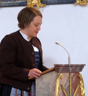 Am Schluss des Gottesdienstes dankte MVA-Vorstandssprecherin Stefanie Jöchle (Bild) allen, die dem Musikverein treu verbunden sind, die ihn mit Leben erfüllen und ihm ihre Kraft, ihren  ehrenamtlichen Einsatz spenden. Dabei vergaß sie nicht, den Altvorderen zu danken, auf deren Leistung man aufbaue.
