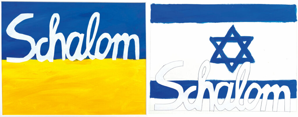 Zurück in Attenweiler hängt sie eine Israel-Flagge an ihre Hausfassade, sichtbar von der Hauptstraße. In ihrem Wohnort fühle sie sich sicher, in ihrer Nachbarschaft wohnten Rumänen, keine Islamisten, erklärt sie, aber dennoch sei sie unter ständiger Anspannung. „Es ist wahnsinnig anstrengend.“ So könne sie nicht arbeiten. Aber was tun? Sie fragt im Rathaus, ob sie neben ihrem Bild, das dort seit über einem Jahr hängt und die Flagge der Ukraine zeigt mit dem Wort „Shalom“ (Friede), auch ein Bild hängen darf mit der israelischen Flagge und demselben Wunsch „Shalom“. Der Bürgermeister will es nicht. Glaser ist getroffen und hängt auch das Ukraine-Bild ab.