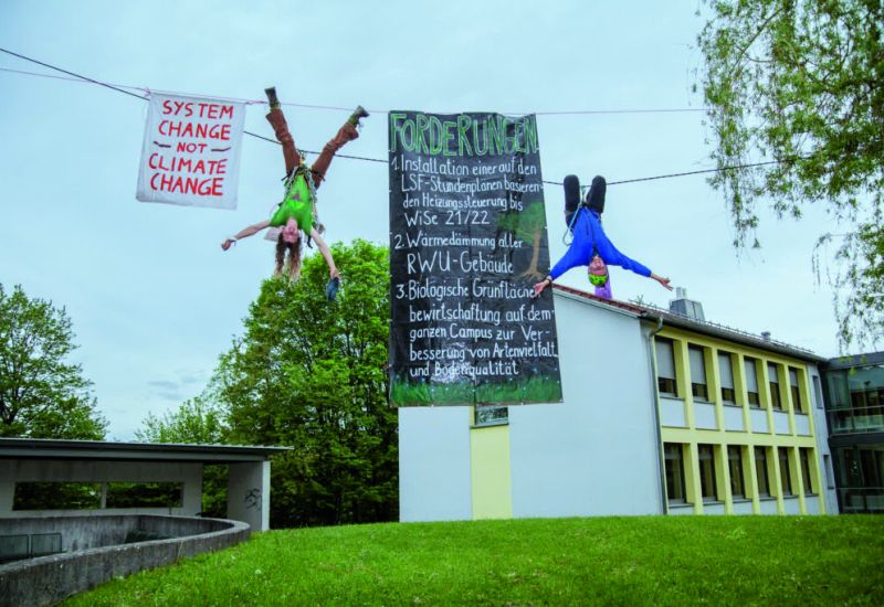 Und daran soll’s nicht mangeln, das hat er sich für seinen Ruhestand vorgenommen. Dass er seit einigen Jahren auffällig geworden ist, weil er als arrivierter Beamter und Wissenschaftler mit den Schülerinnen und Schülern von Fridays for Future in Ravensburg auf dem Marienplatz demonstrierte und wiederholt aus Protest auf Bäume kletterte und damit den Verkehr behinderte, sieht er als Reifungsprozess zu einem Thema, das ihn berührt: die Klimakrise. Ihre Existenz ist in der Wissenschaft schon lange unbestritten, aber was tun als Wissenschaftler, wenn man weiß, dass die Zeit zum Handeln unwiederbringlich läuft und die Gesellschaft darüber debattiert, ob es statthaft ist, dass SchülerInnen aus Protest gegen das politische Nichtstun und für ihre Zukunft hin und wieder die Schule schwänzen? Das treibt dem sportlichen Opa schon mal die Tränen in die Augen, wenn er mit seinem Enkel auf dem Arm bei einer Demo dem bunten SchülerInnenhaufen Mut macht und die Stadtoberen auffordert, endlich mehr und Konkreteres zu tun, um ihren Kindern eine Chance auf ein Leben zu lassen, das nicht von Angst und Schrecken bestimmt wird.