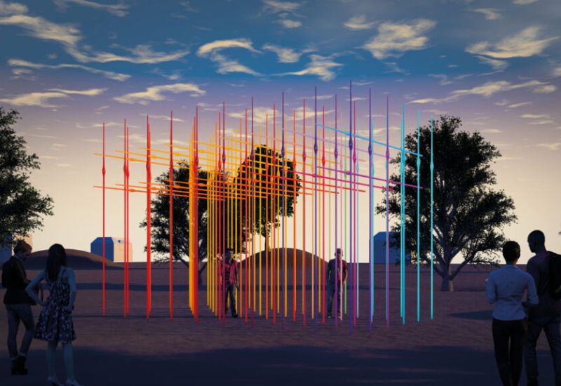 Die skulpturale Intervention „Lanzenfeld“ des Künstlers Raimund Schucht lädt die Betrachtenden dazu ein, in die tumultartige Atmosphäre des Bauernaufstands im Jahr 1525 einzutauchen. In militärischer anmutender Formation erheben sich 75 abstrakte Lanzen aus dem Erdreich. Die Lanzen ragen wie die Spieße der zu Fuß kämpfenden Landsknechte vertikal zum Himmel. Horizontal scheinen die Lanzen der berittenen Soldaten den Betrachtenden entgegenzufliegen. Landsknechte und Reiter waren gekommen, um die Bauern niederzuschlagen. Jede einzelne Lanze verkörpert die Gewalt, mit der die Freiheitskämpfer verfolgt wurden. Die Schlacht an der Leubas besiegelte die Niederlage der Bauern.