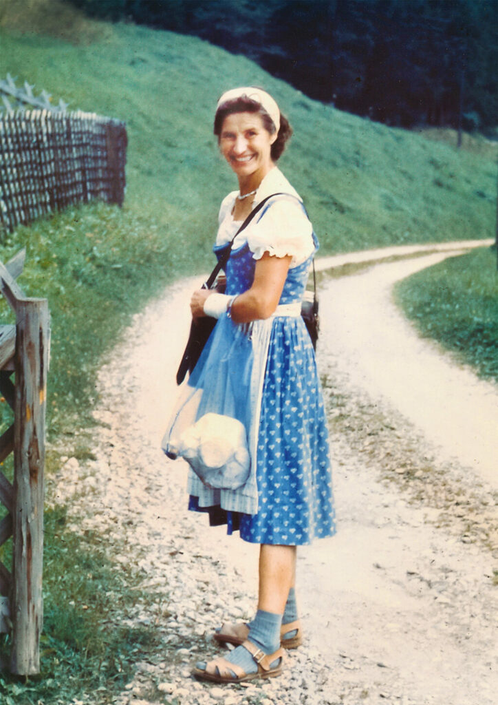 Ganz anders die „Post-Resl“, die vom Kreuzthal aus 40 Jahre, sechs Tage in der Woche den abgelegenen Höfen im Kreuzbach- und Ulmerthal, auf dem Wolfs- und Wirtsberg bis hinauf zur Kreuzleshöhe die Post brachte und das eine oder andere Lebensmittel gleich mit. Mehr als 16 Kilometer, 400 Höhenmeter, täglich und zu Fuß. Das sind in 40 Jahren 180.000 Kilometer oder vier Mal um die Erde. Und auf diesem mühsamen Lebensweg gebar Theresia Eisele auch noch fünf Kinder, die sich an eine glückliche Kindheit erinnern. Ihre Mutter starb 2009 mit 86 Jahren – auch glücklich, wie es scheint. „Sie war die letzte“, erzählt die Autorin. „Die letzte Landbriefträgerin, die die Post im Oberallgäu zu Fuß austrug.“ Es endete 1987 als die Post-Resl auf ihrem täglichen Dienstweg auf einem Tannenzapfen ausrutschte und sich beim Sturz heftig die Schulter verletzte. „Endstation Tannenzapfen“ berichtete die Tageszeitung über Resls Ausrutscher und ihr Dienstende.