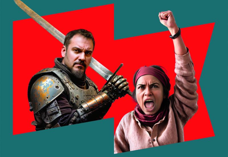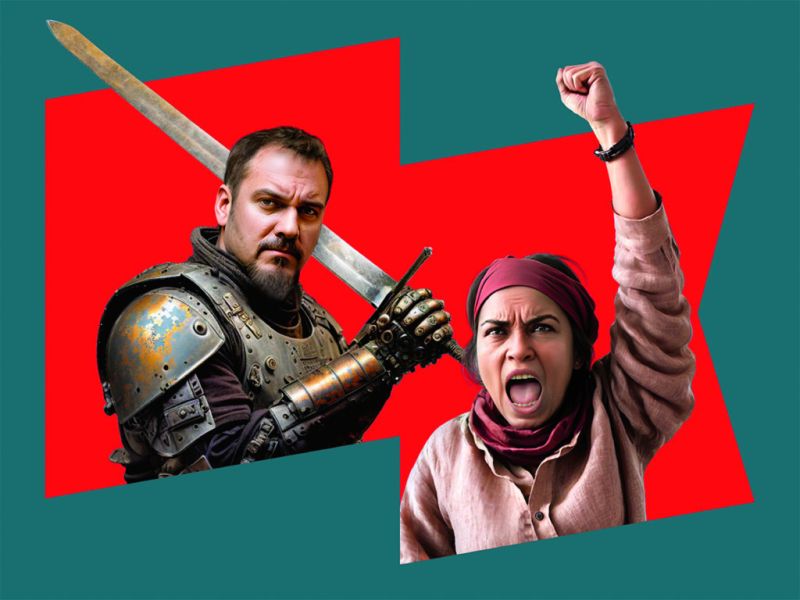 Plakatmotiv der Landesausstellung. KI generierte Darstellungen von Margarethe Renner und Götz von Berlichingen.