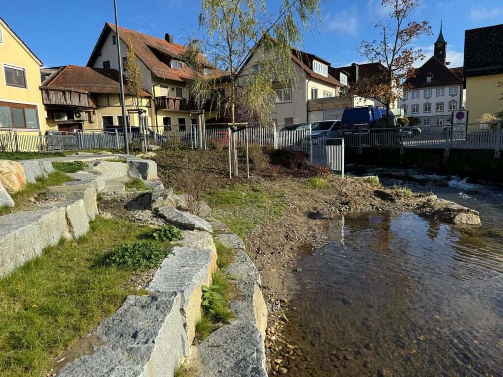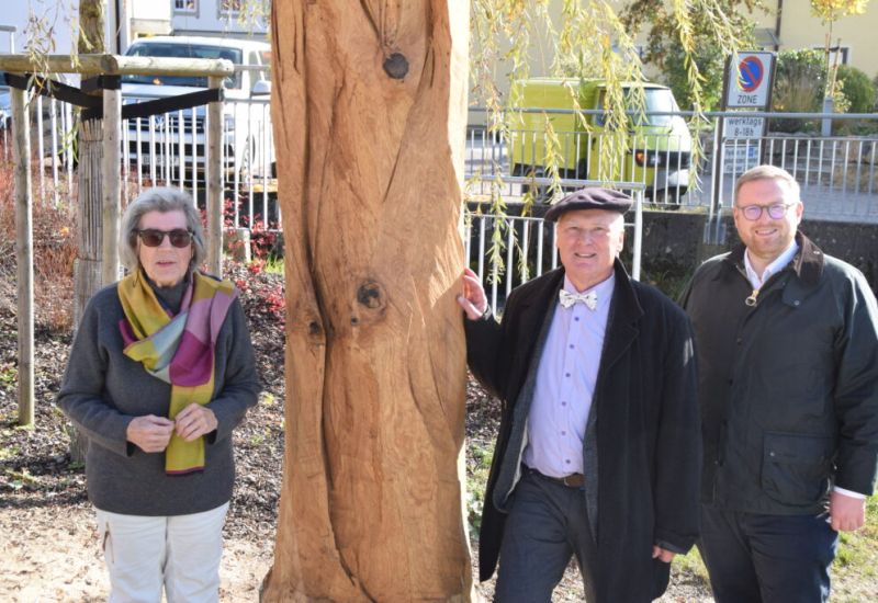 Ochsenhausen – Seit 18. Oktober schmückt eine „Wasserhüterin“ die Rottuminsel in Ochsenhausen. Die Dame heißt Hagar. Mitten im Ort, wo der Bachlauf renaturiert am neuen Wohnpark vorbeifließt, steht die mehrere Meter hohe Skulptur aus Eichenholz und mahnt die BetrachterInnen: „Wasser ist ein Menschenrecht“.