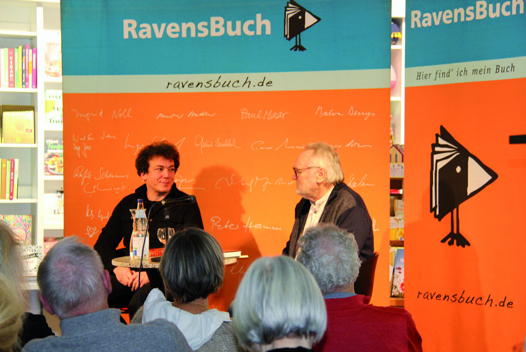 Ravensburg – Oft steigen wir von unseren Bäumen herab, verlassen das Baumhausdorf im Altdorfer Wald und mischen uns andernorts ein. In diesem Falle ist es eine Lesung mit Diskussion in RavensBuch, der Buchhandlung in Ravensburg. Das Buch „ENDZEIT – Die neue Angst vor dem Weltuntergang und der Kampf um unsere Zukunft“ sei unser Thema, meint Roland Reck von BLIX. Wir sind Samuel Bosch (20) und Sina Wagner (24): Waldschützer:innen, Klimagerechtigkeitsaktivist:innen, Unruhestifter:innen, Baumhaus- und Brückenbauer:innen. Unser Arbeitsauftrag: Schreibt über die Veranstaltung, lest das Buch, berichtet über euch und eure Ideen für eine bessere Welt für alle.