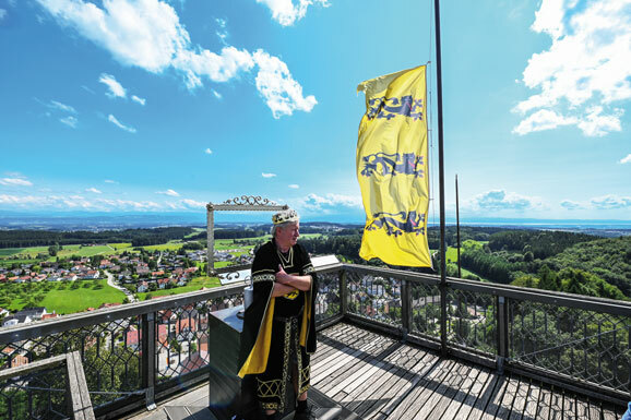 Der Fantasie sind keine Grenzen gesteckt: Mein Reich soweit das Auge reicht! Drei Löwen auf gelbem Grund zieren das Wappen der Waldburg.